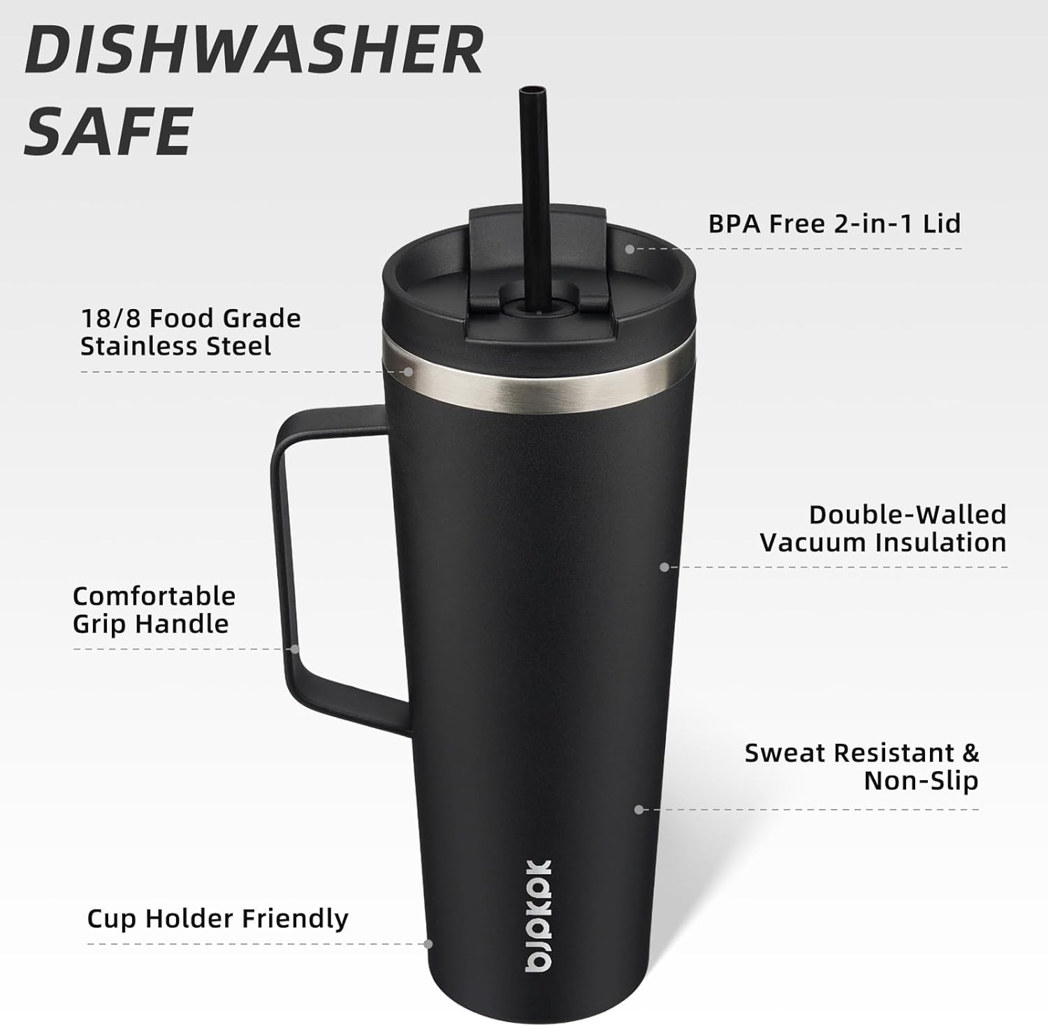 BJPKPK Insulated Tumbler with Handle, 26oz Insulated Tumblers with Lid and Straw, Stainless Steel Metal Water Bottles, Coffee Travel Mugs, Cups, Black