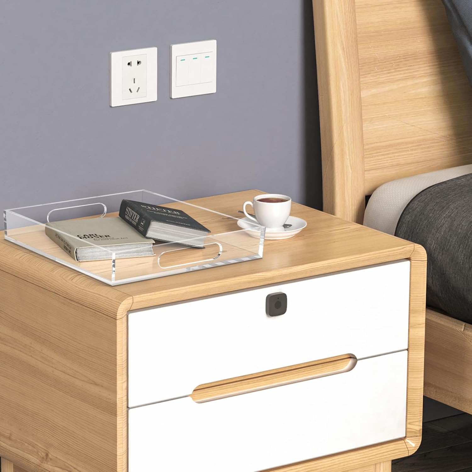 - Clear Decorative Tray : The clear look of the tray takes up almost no visual space, making it easy to keep remotes and magazines on the coffee table and toiletries on the dresser, keeping items organized and visually visible at a glance.