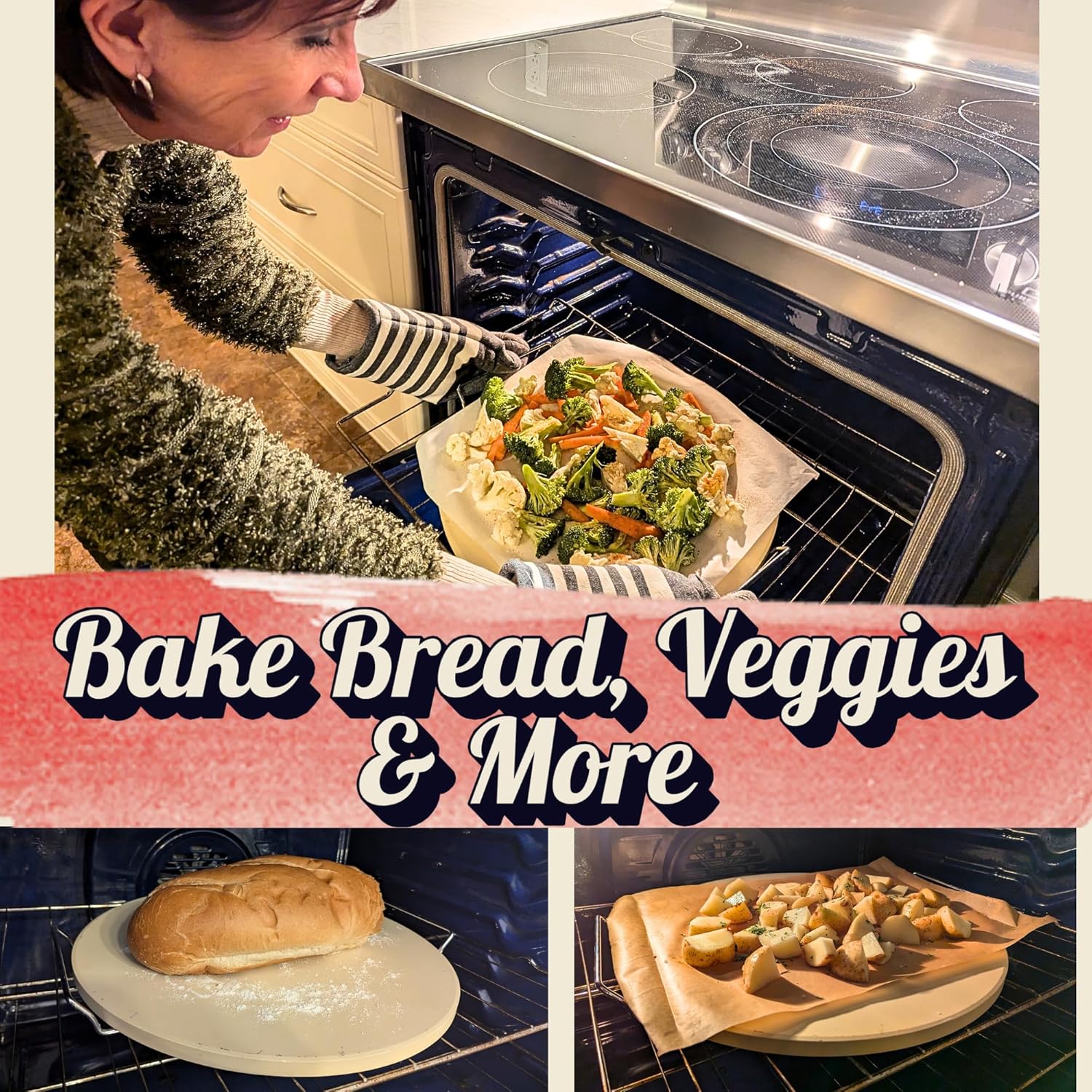 - EASY TO USE & VERSATILE: Beyond just pizza, our outdoor pizza oven stone offers endless possibilities. Use it as nonstick bread baking stone, sourdough bread baking stone, biscuits, cookies, pastry, and more. Can use as a stone cookie sheet, bread stone, grilling stone.