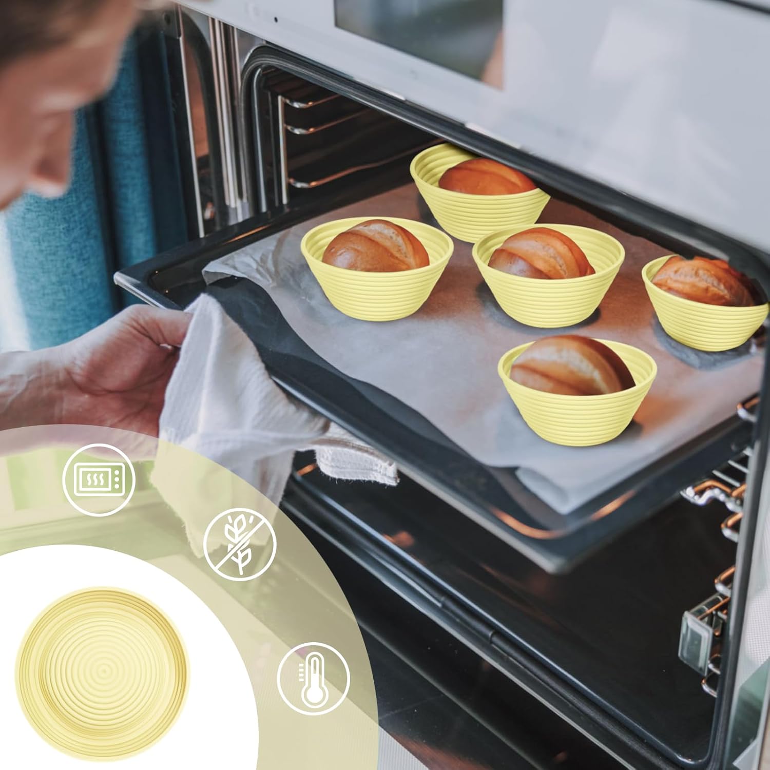 Silicone Banneton, Sourdough Bread Baskets (Set of 6, 5 Inch), Round Proofing Bread Bowls with Starter Kit, Bread Making Baking Supplies