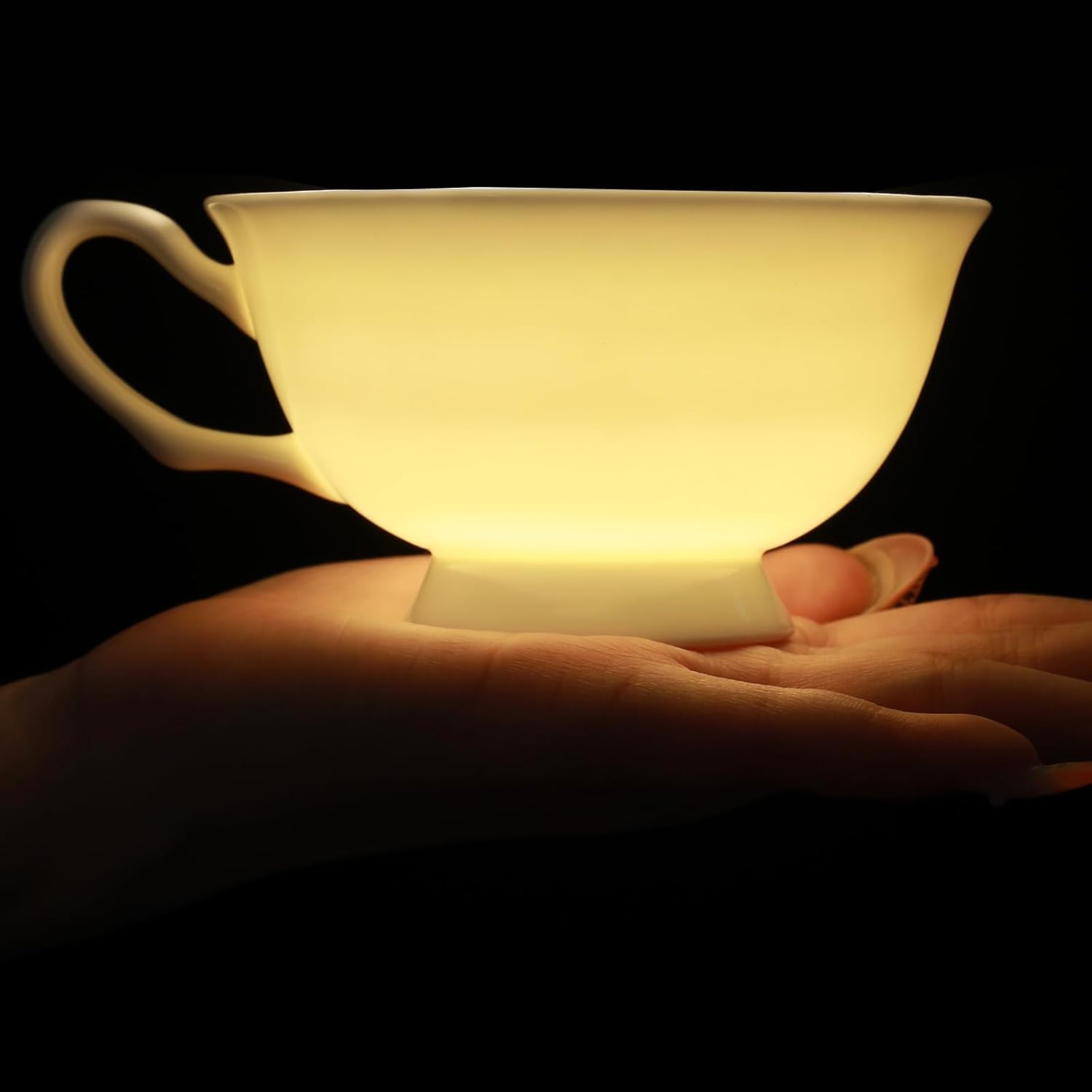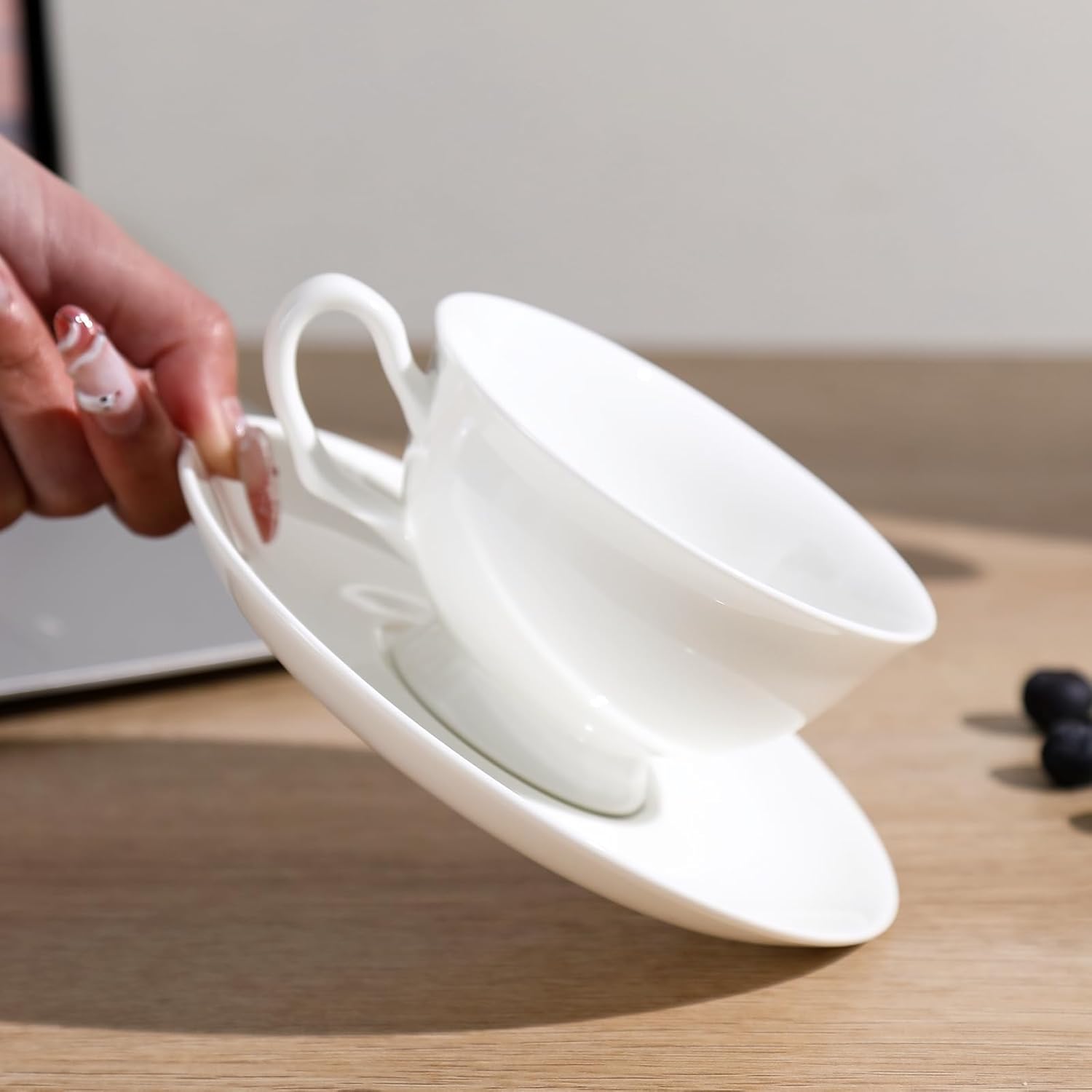 - [Luxury Bone China] Our cups and saucers are handmade from high-quality bone china. Compared to ordinary porcelain, they feature a more elegant whiteness, lighter weight, superior heat retention, and enhanced durability. When light passes through the cup's walls, it emits a soft, moonlight-like glow