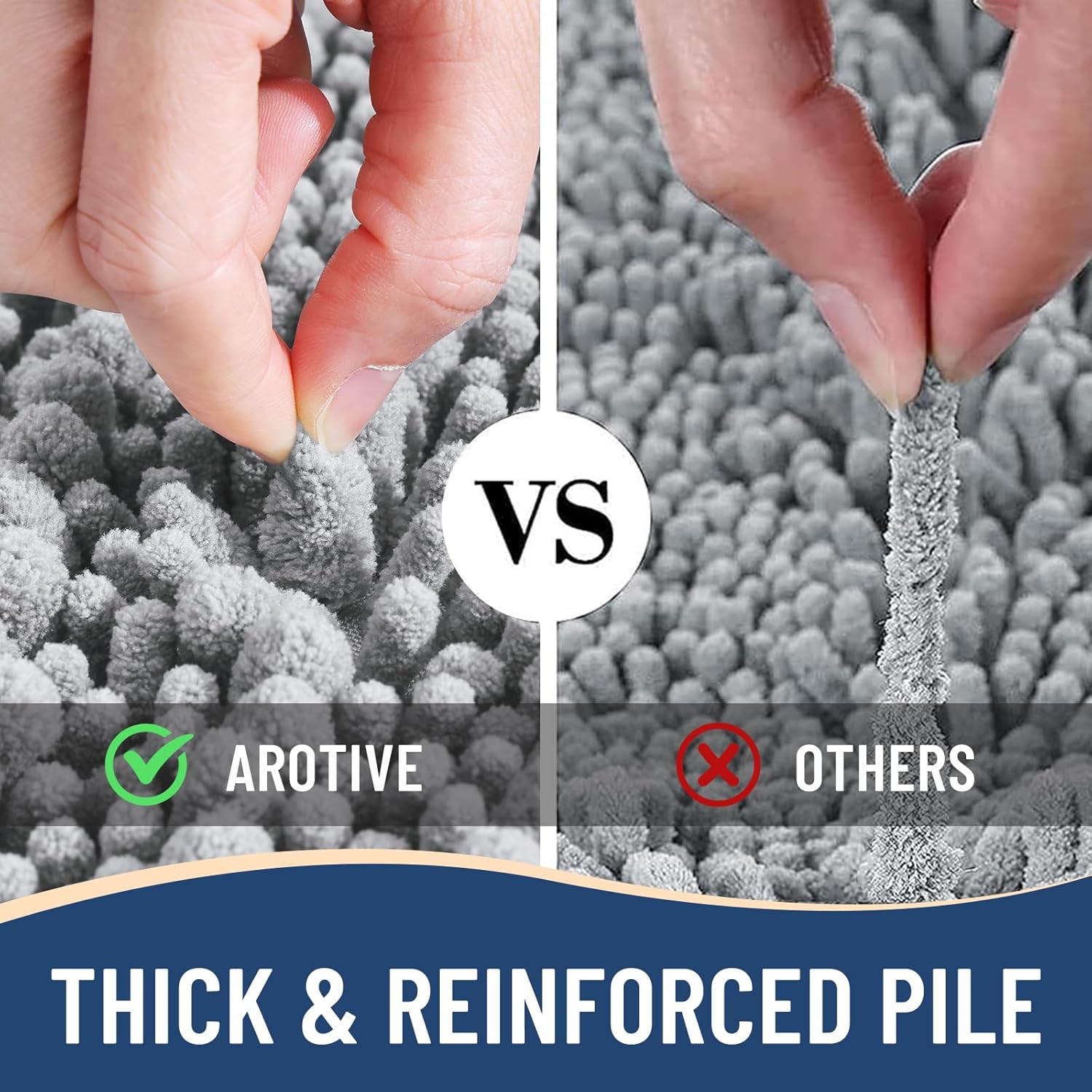 Arotive Luxury Chenille Bathroom Rug Mat, Extra Soft Thick Absorbent Shaggy Bath Rugs, Non-Slip Machine Wash Dry, Plush Bath Mats for Bathroom, Shower and Tub, 44x32, Light Grey