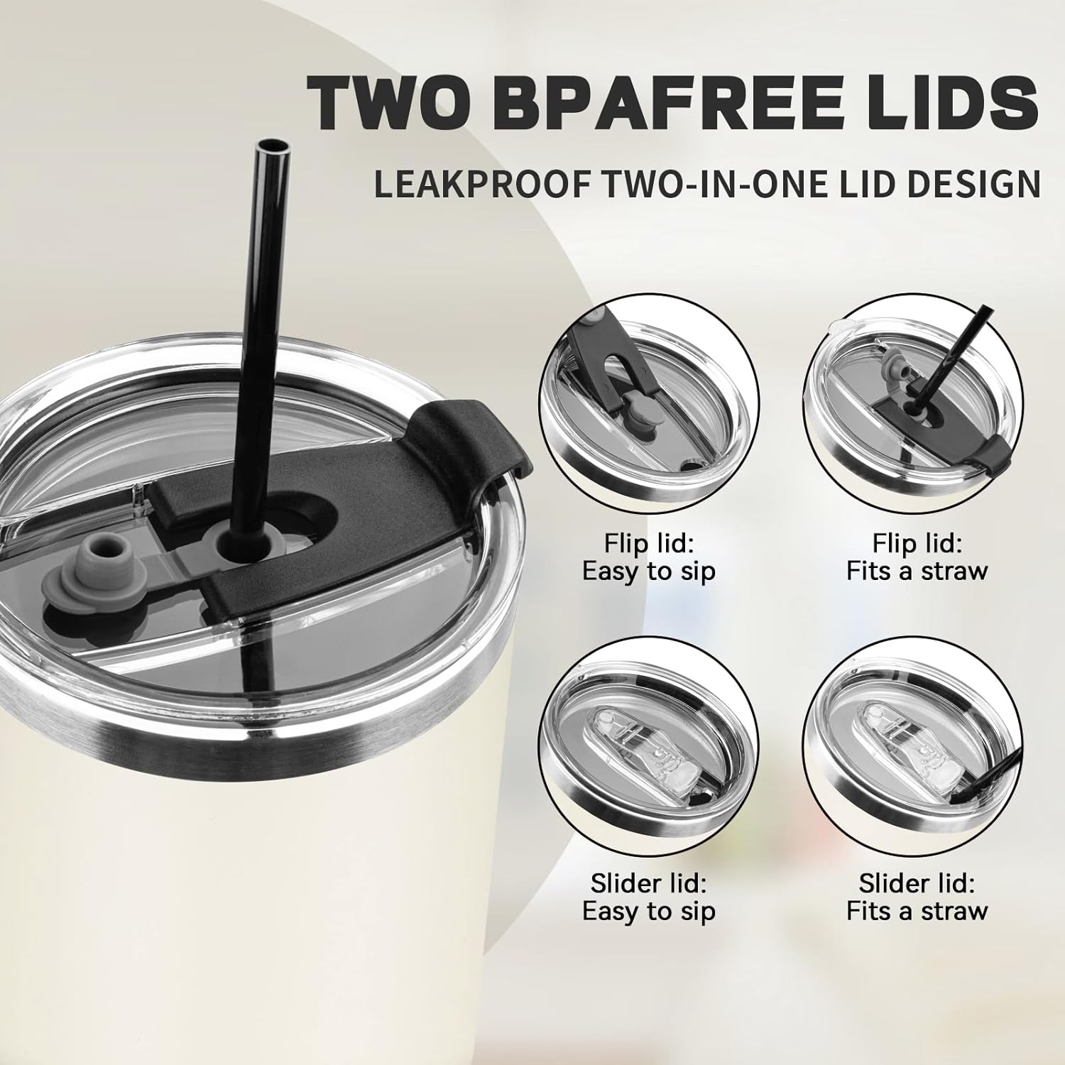 - ✅【𝗦𝘂𝗽𝗲𝗿𝗶𝗼𝗿 𝗟𝗲𝗮𝗸-𝗽𝗿𝗼𝗼𝗳 𝗣𝗲𝗿𝗳𝗼𝗿𝗺𝗮𝗻𝗰𝗲】The travel mugs insulated for hot and cold features a unique 3-in-1 lid design that lets you sip, drink through a straw, or enjoy the wide-mouth design. The silicone seal on the top of the lid is so tight that it won't leak even if shaken or accidentally poured. When sipping, no liquid will leak from the lid except through the sipping hole. Also, the sealed lid further enhances heat retention.