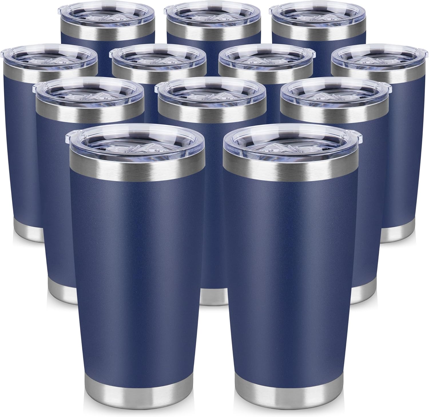 20 oz Tumbler Stainless Steel Tumblers Bulk with Lid Double Wall Insulated Coffee Tumbler Cups for Hot & Cold Drinks Powder Coated Travel Coffee Tumbler Mug Metal (Navy Blue, 12 pack)