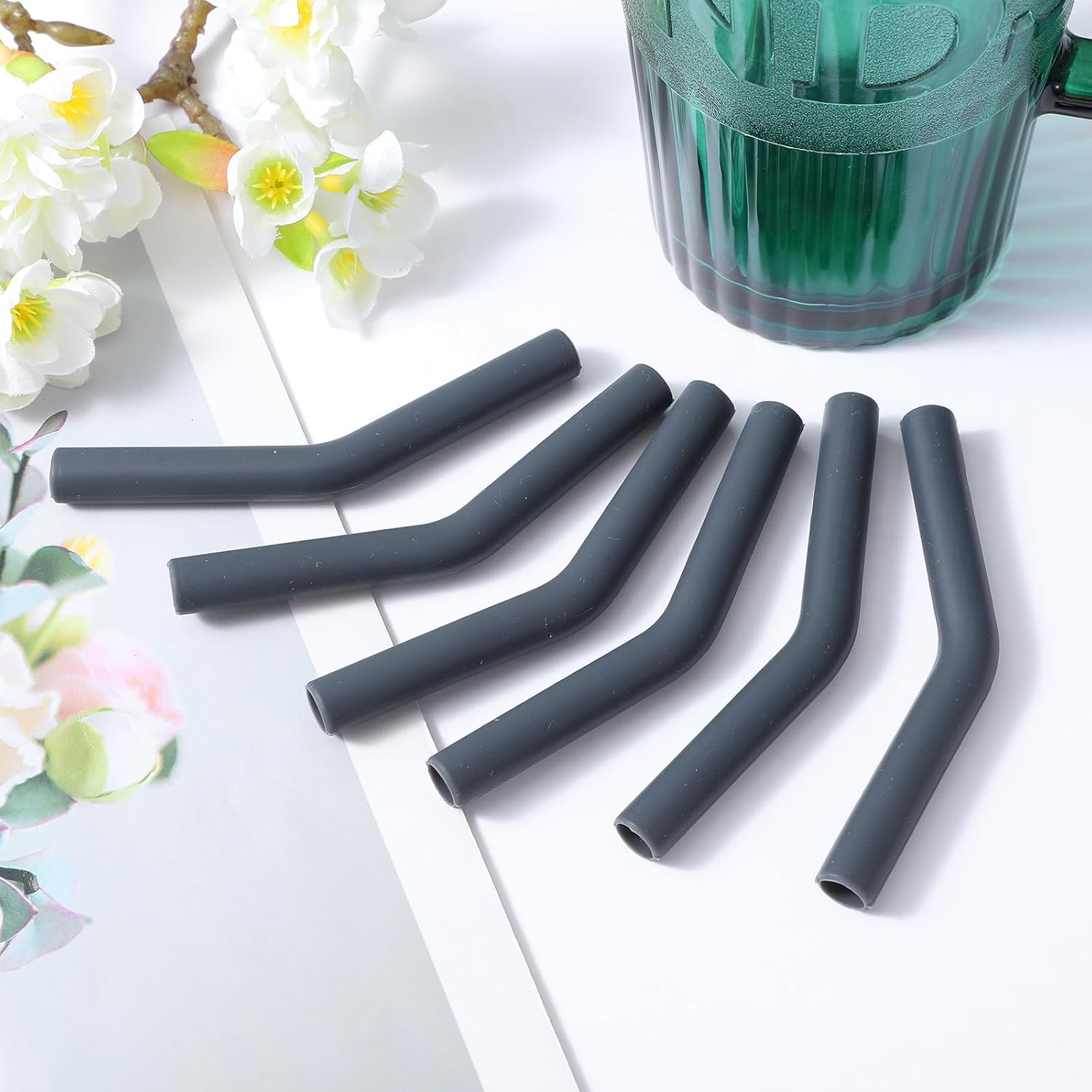 6PCS Silicone Straw Tips Reusable Rubber Straw Covers Replacement Flexible Food Grade Silicone Straw Elbows Tips Extender for 8mm 5/16" Outer Diameter Metal Stainless Steel Straws Accessories(Black)