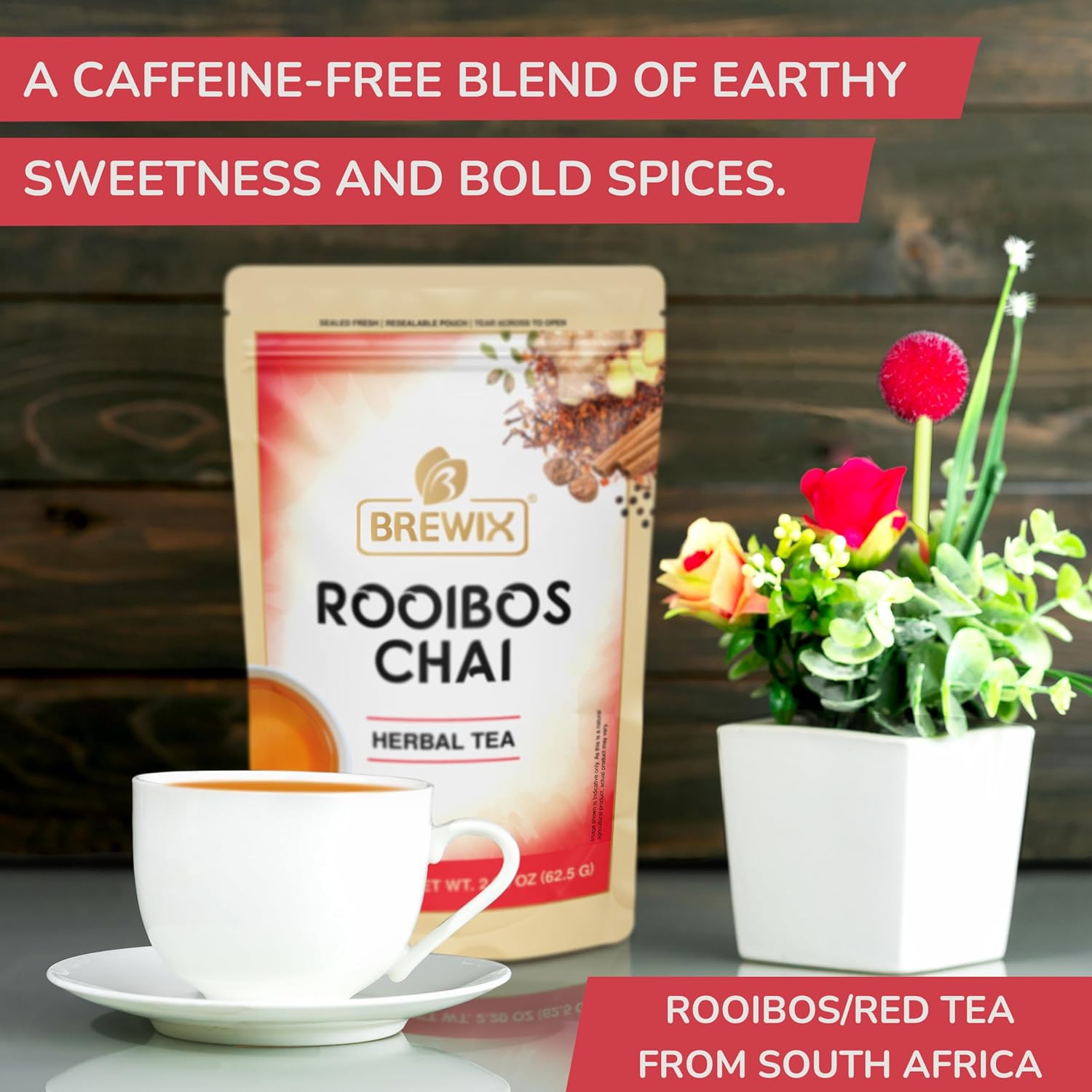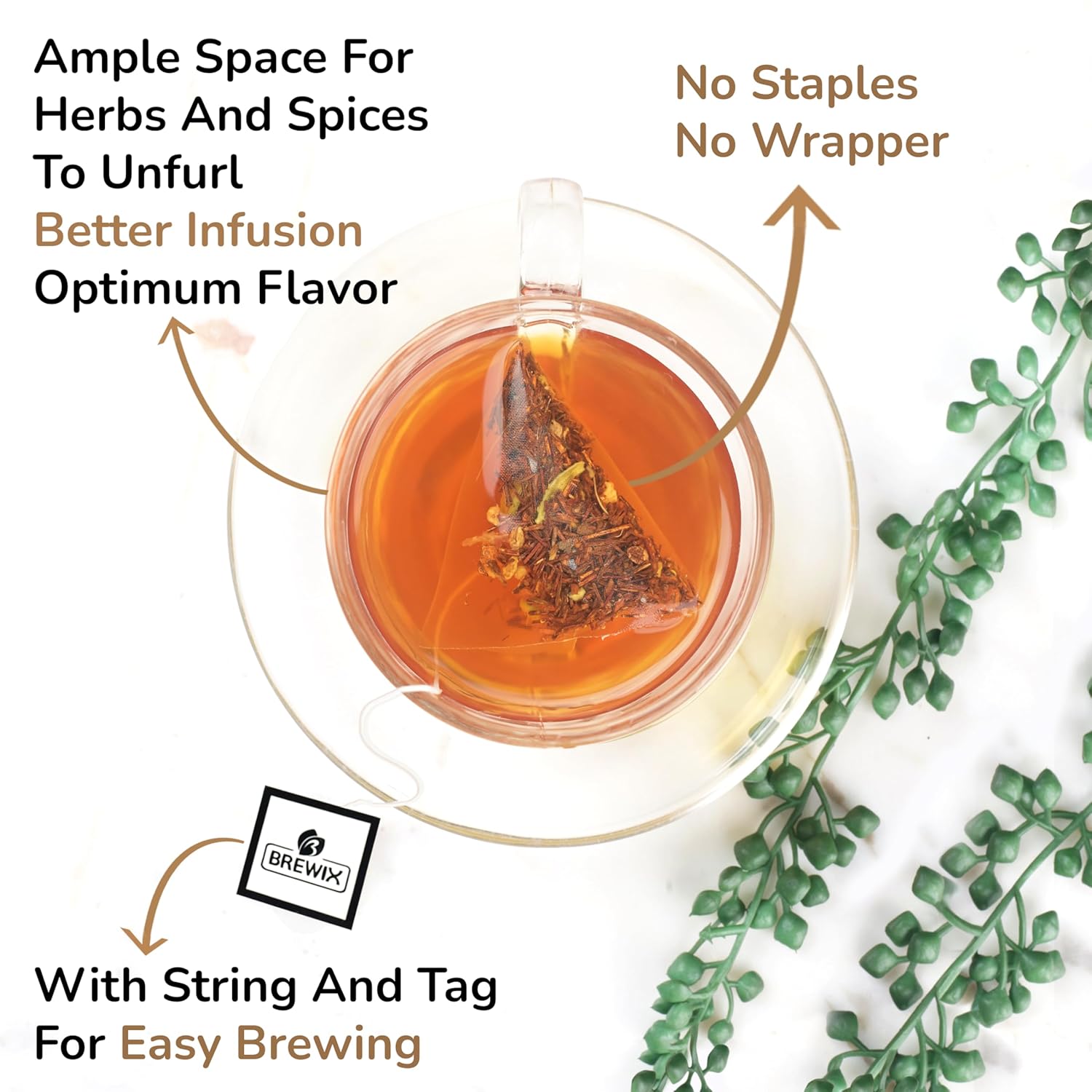 BREWIX, Rooibos Chai Tea Bags (25 Pyramid Tea Bags) Caffeine-Free, Herbal Tea, South African Red Tea | Rooibos, Cardamom, Cinnamon, Black Pepper, Nutmeg, Ginger & Clove
