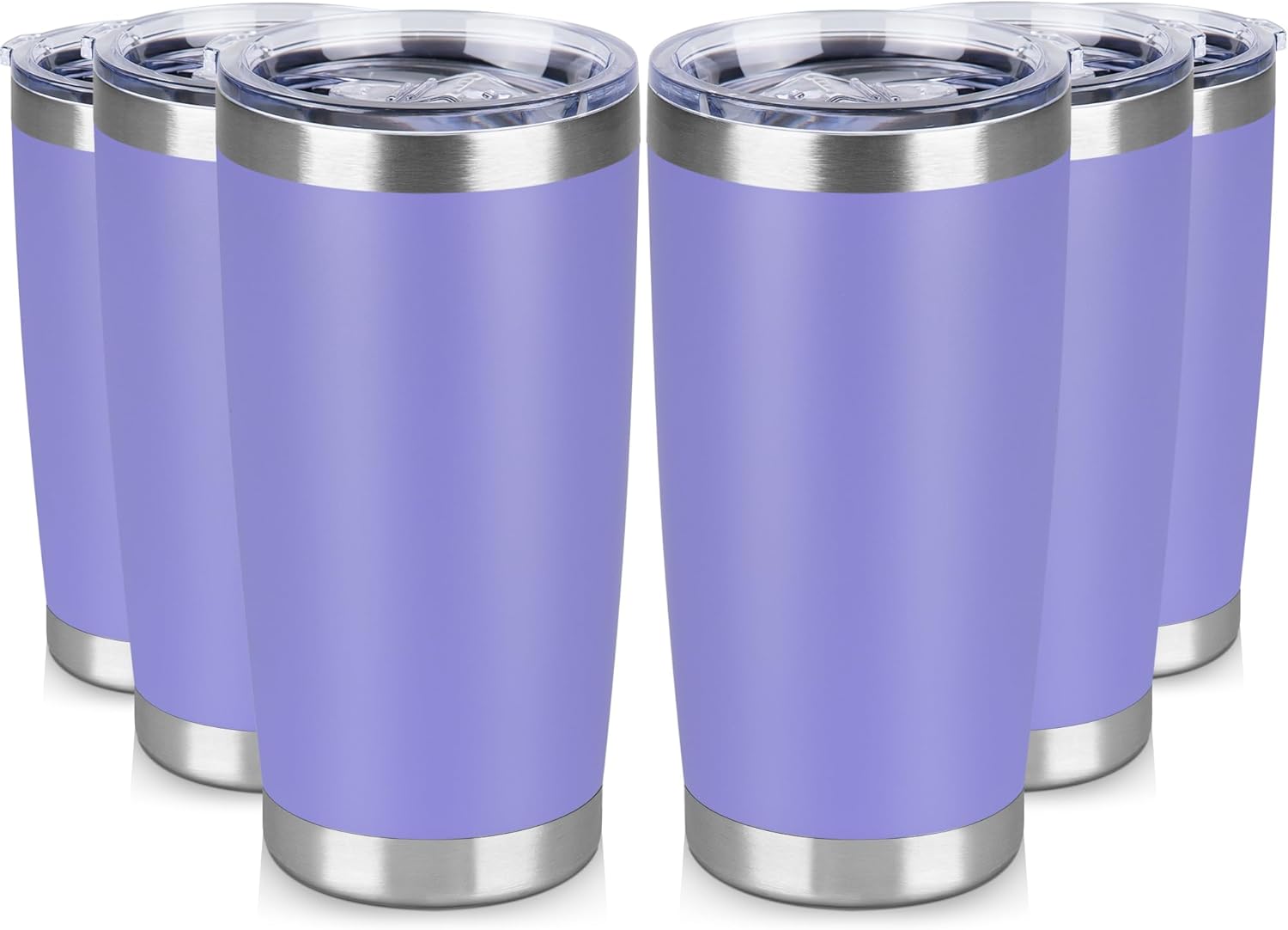 20 oz Tumbler Stainless Steel Tumblers Bulk with Lid Double Wall Insulated Coffee Tumbler Cups for Hot & Cold Drinks Powder Coated Travel Coffee Tumbler Mug Metal (Lavender, 6 pack)