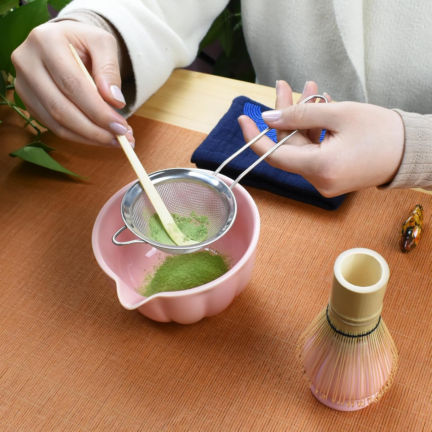 - Complete Set: Includes matcha bowl, whisk, tea scoop, whisk holder, tea scoop holder, tea cloth, matcha powder strainer and tea manual.