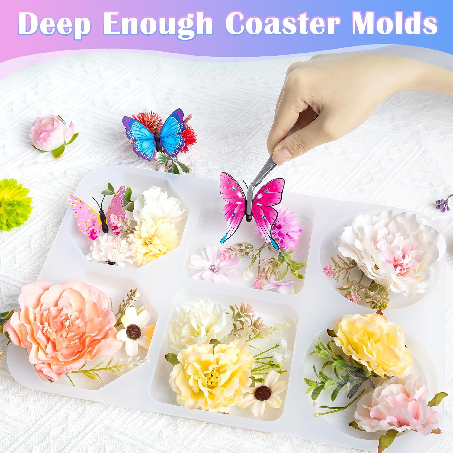 Deep Coaster Resin Molds Silicone Octagon Round Square Silicone Molds for Resin Epoxy Resin Casting Craft Mold for Flower Preservation DIY Art