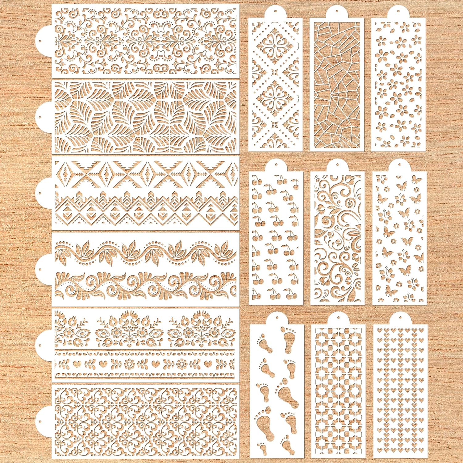 Cake Buttercream Decorating Stencils - 15 Pcs Reusable Cake Stencils Floral Boarder, Cookies Royal Icing Stencils Biscuits Decorating Template Cake Baking Stencils