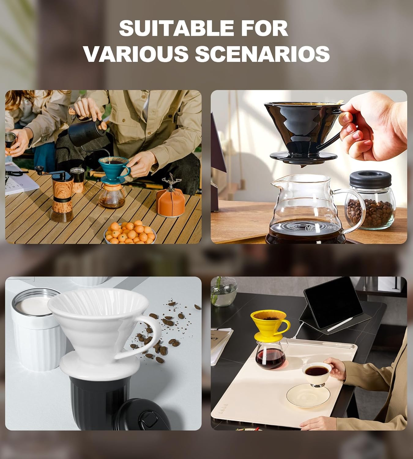 - ☕【Heat-resistant Ceramic】 Crafted from high temperature premium ceramic, with good heat preservation and durability, prevents heat loss during brewing compared to a stainless steel or plastic filter. Porcelain does not absorb odors or pass on chemical taste into your brew.Its sleek finish complements any kitchen, office, or cafe decor, blending functionality with minimalist style.