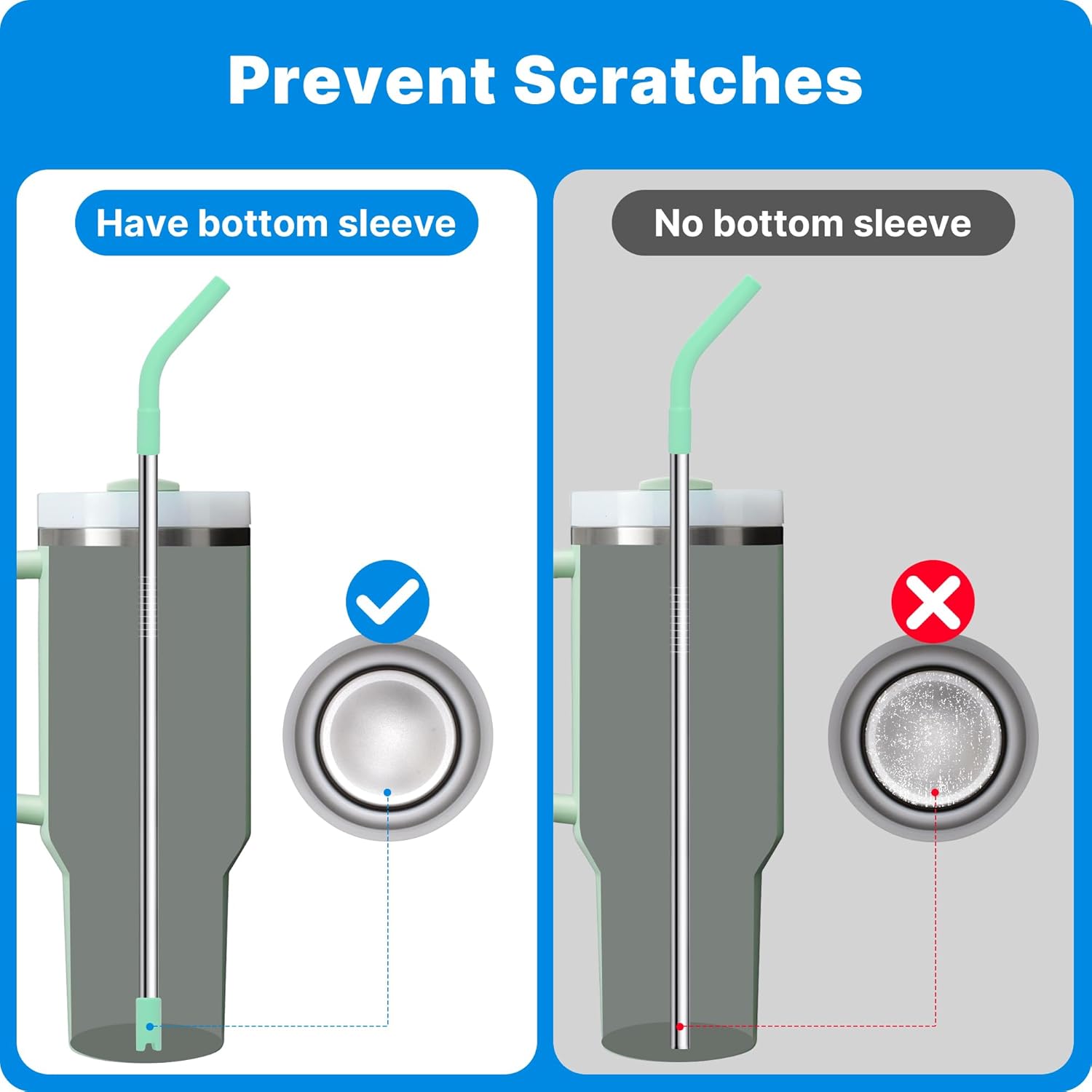 - 【Thoughtful Design】 Silicone straw tips with straw bottom sleeve, can effectively reduce the metal straw and cup wall contact with the sound of clanking, to avoid scratching the inner wall of the cup, to extend the life of the cup