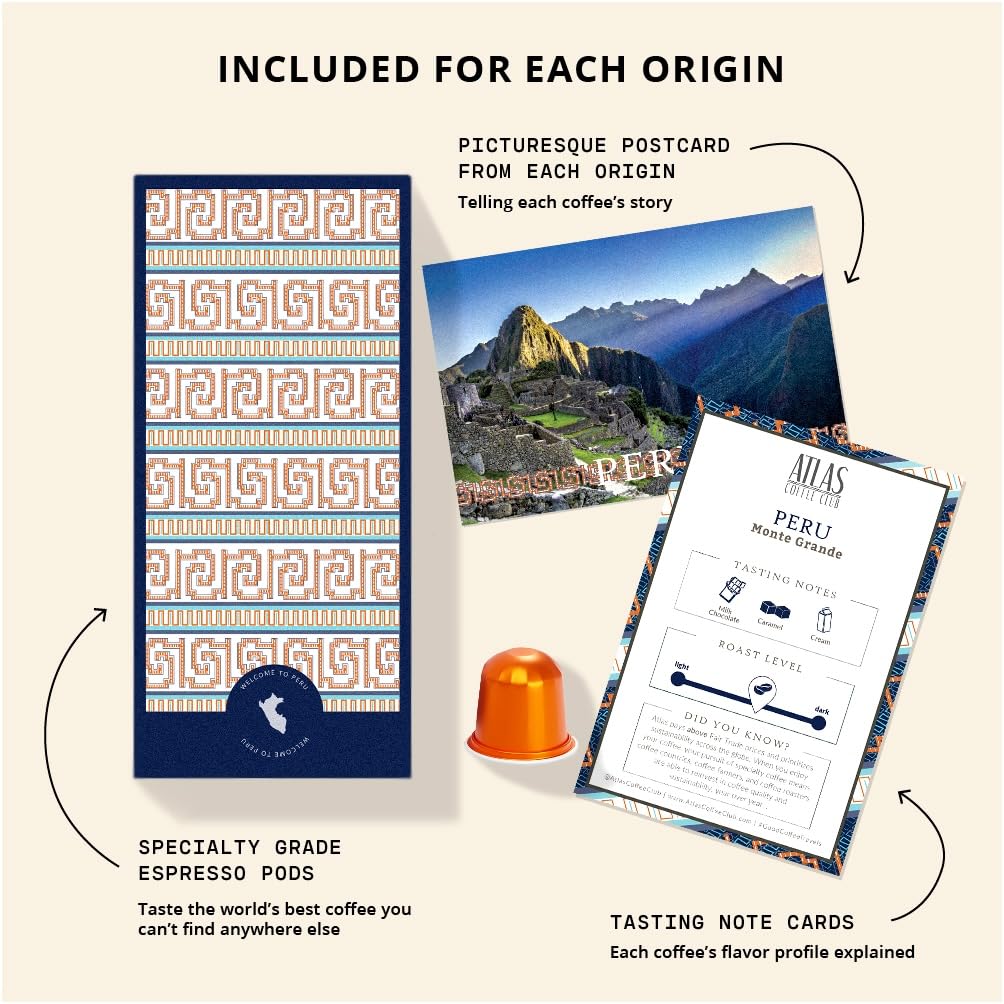 - ENJOY: 40 Atlas Coffee Club espresso capsules (4 boxes). Compatible with: Nespresso Original Machines*, Essenza Mini, Essenza Plus, Pixie, CitiZ, Lattissima, KitchenAid, and Creatista Nespresso Original machines.* Not compatible with Nespresso Vertuo machines. *Atlas Coffee Club is not affiliated with the Nespresso brand.