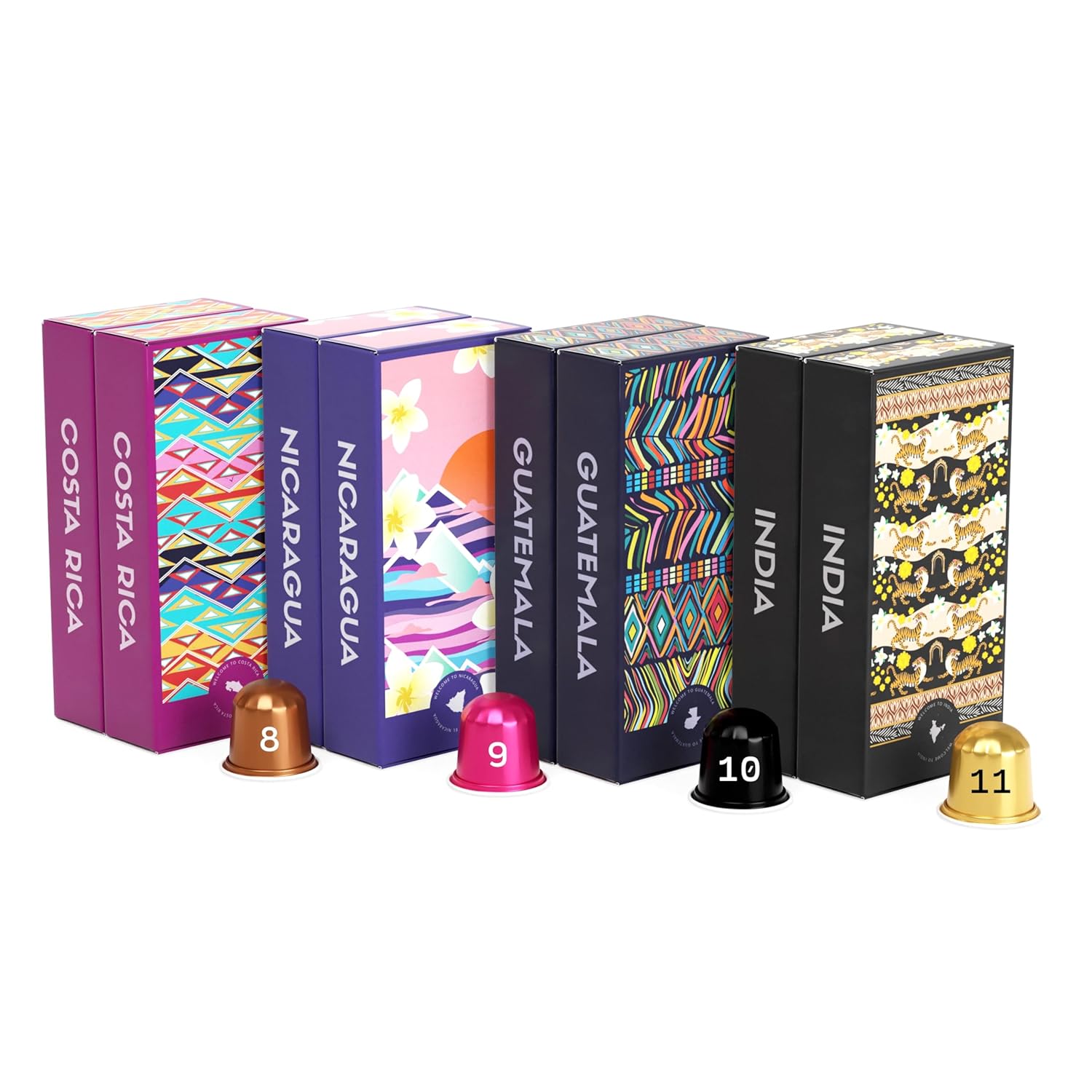 Atlas Coffee Club Espresso Pods Compatible with Nespresso Original– Dark Roast Variety Pack (80 Count)– Aluminum Capsules from Costa Rica, Nicaragua, Guatemala & India– Intensity 8-11