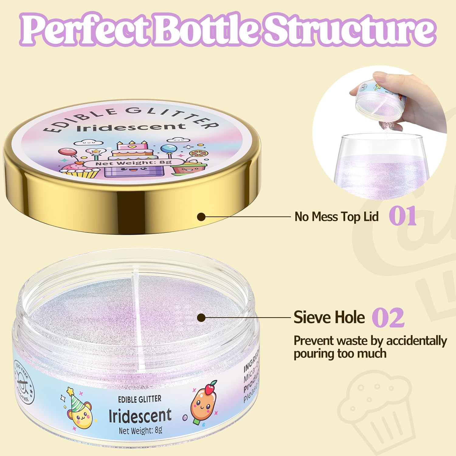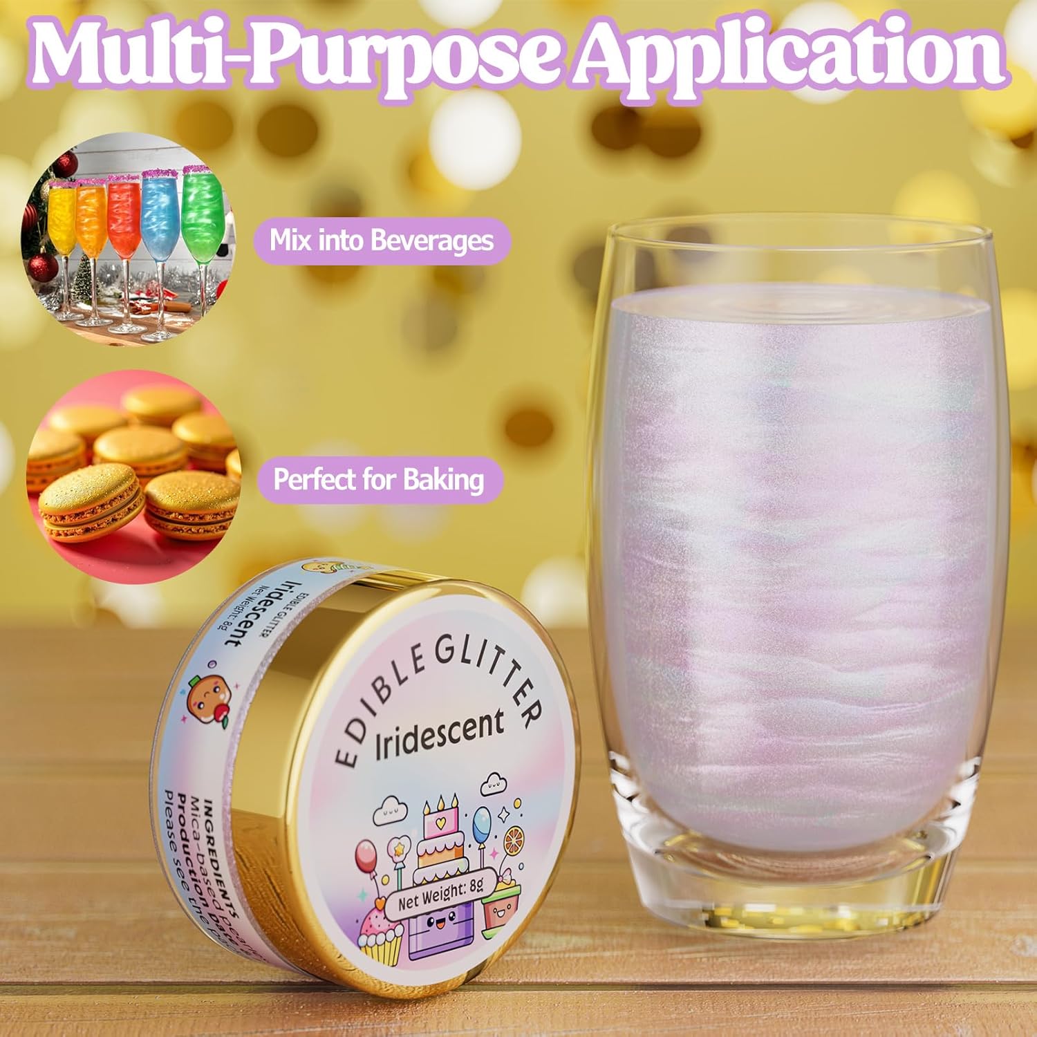 Nomeca Edible Glitter for Drinks Cakes, 8 grams Food Grade Luster Dust Sprinkles Glitter for Cake Decorations, DIY Cocktails, Beverages & Cake Decorating, Dessert Cake Topper (3-Iridescent)