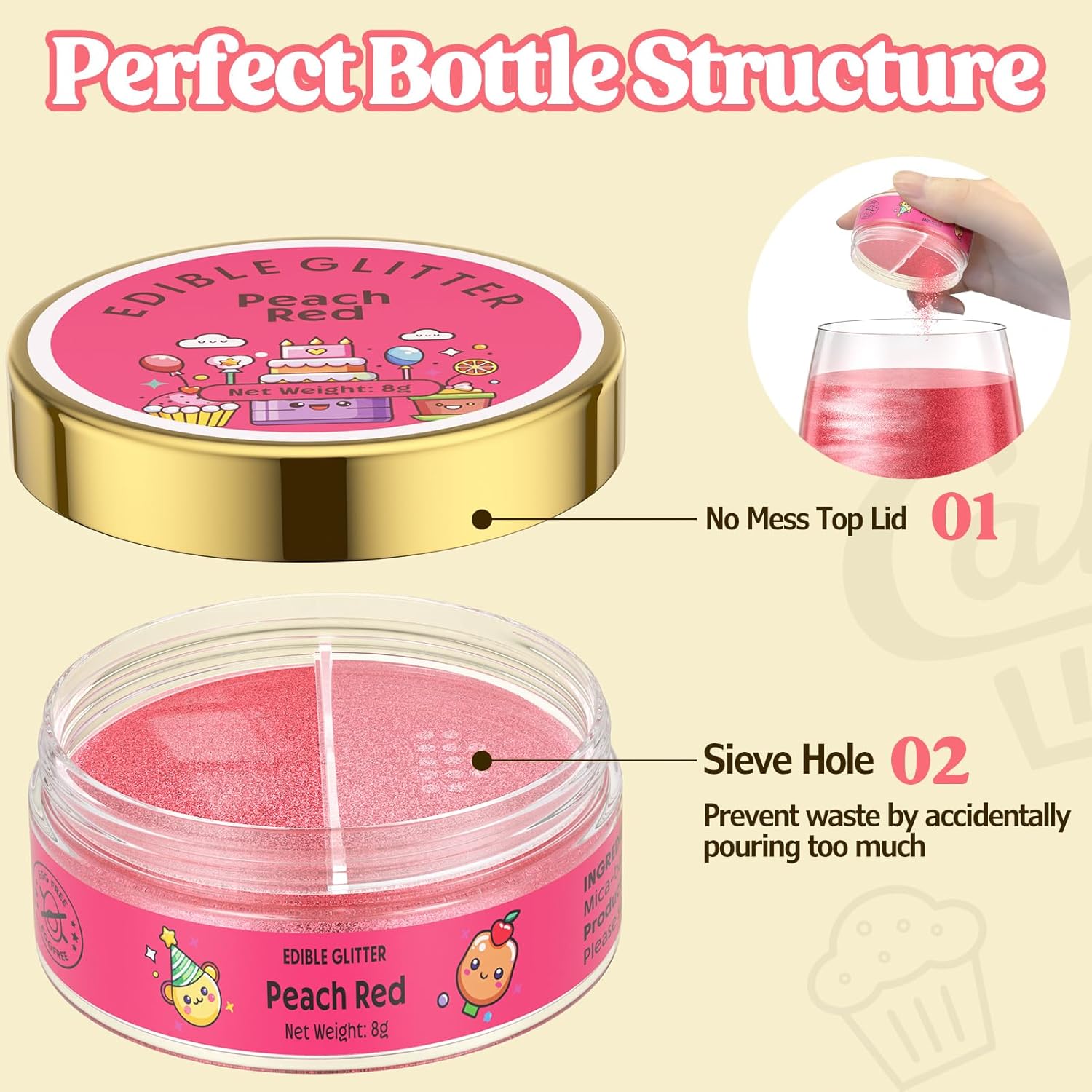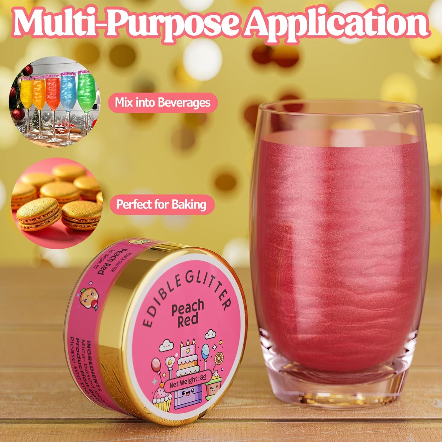 Nomeca Edible Glitter for Drinks Cakes, 8 grams Food Grade Luster Dust Sprinkles Glitter for Cake Decorations, DIY Cocktails, Beverages & Cake Decorating, Dessert Cake Topper (12-Peach Red)