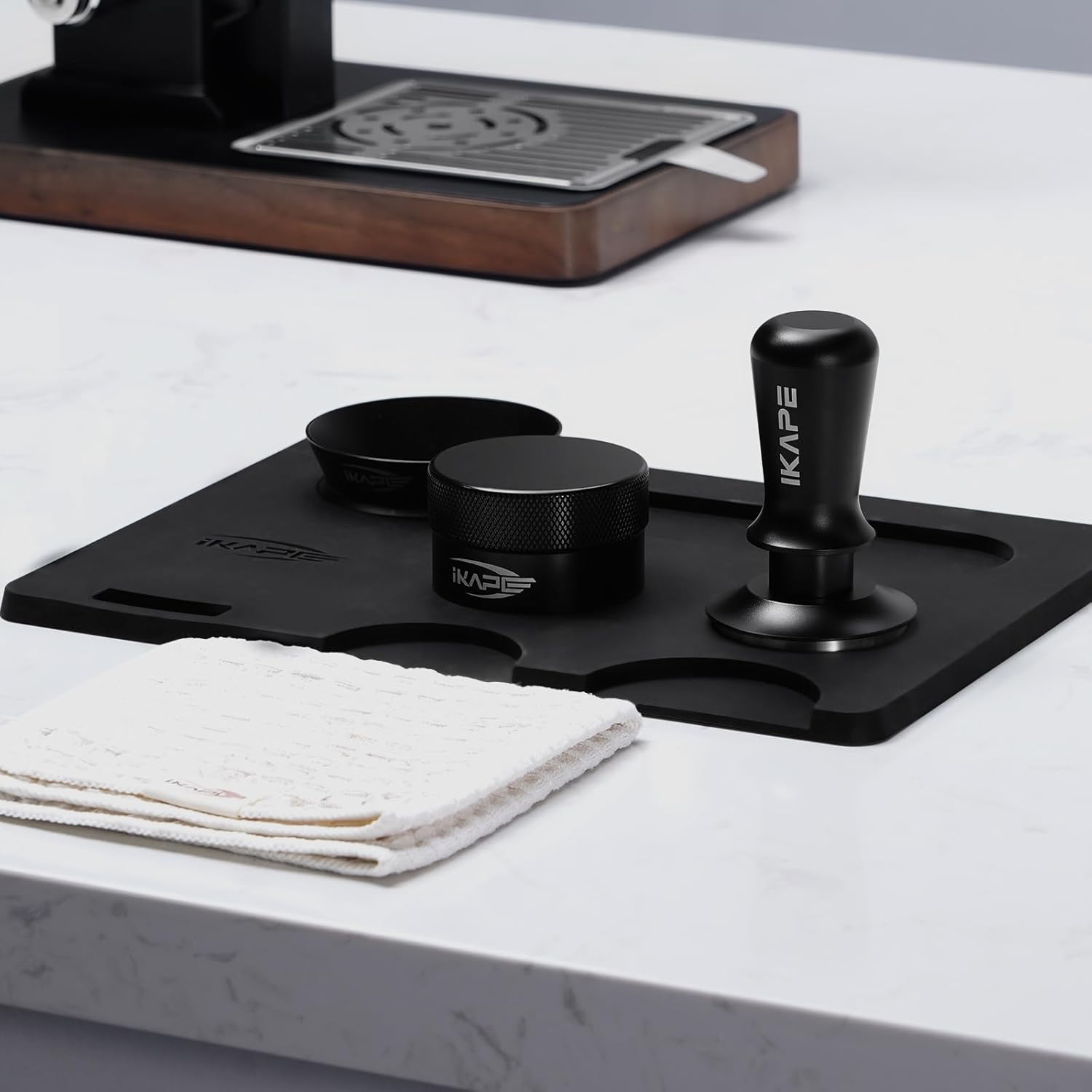 IKAPE 53.3MM Espresso Tamper Kit Black 6 IN 1, Espresso Tool Kit with Coffee Tamper, Distributor, Magnetic Dosing Funnel, Silicone Mat, Puck Screen, Cleaning Towel