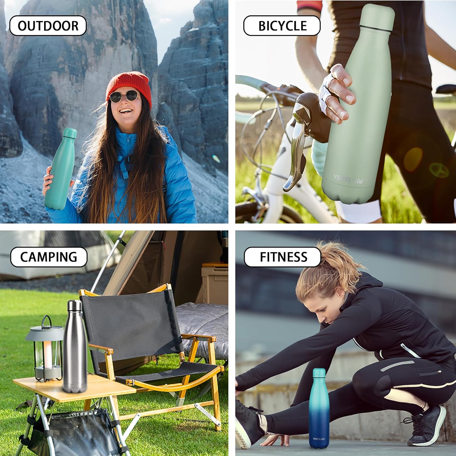 - SAFE & HEALTH:YEBTS life's insulated water bottles are made from BPA-free,phthalate-free, non-toxic, high-quality 18/8 food-grade stainless steel that is strong and rust proof for unique durability.So kids can sip every sip of their favourite beverage with confidence.Children drink water every day,a healthy water bottle is very important to them.This high-quality stainless steel water bottle is definitely the best growth gift for children!