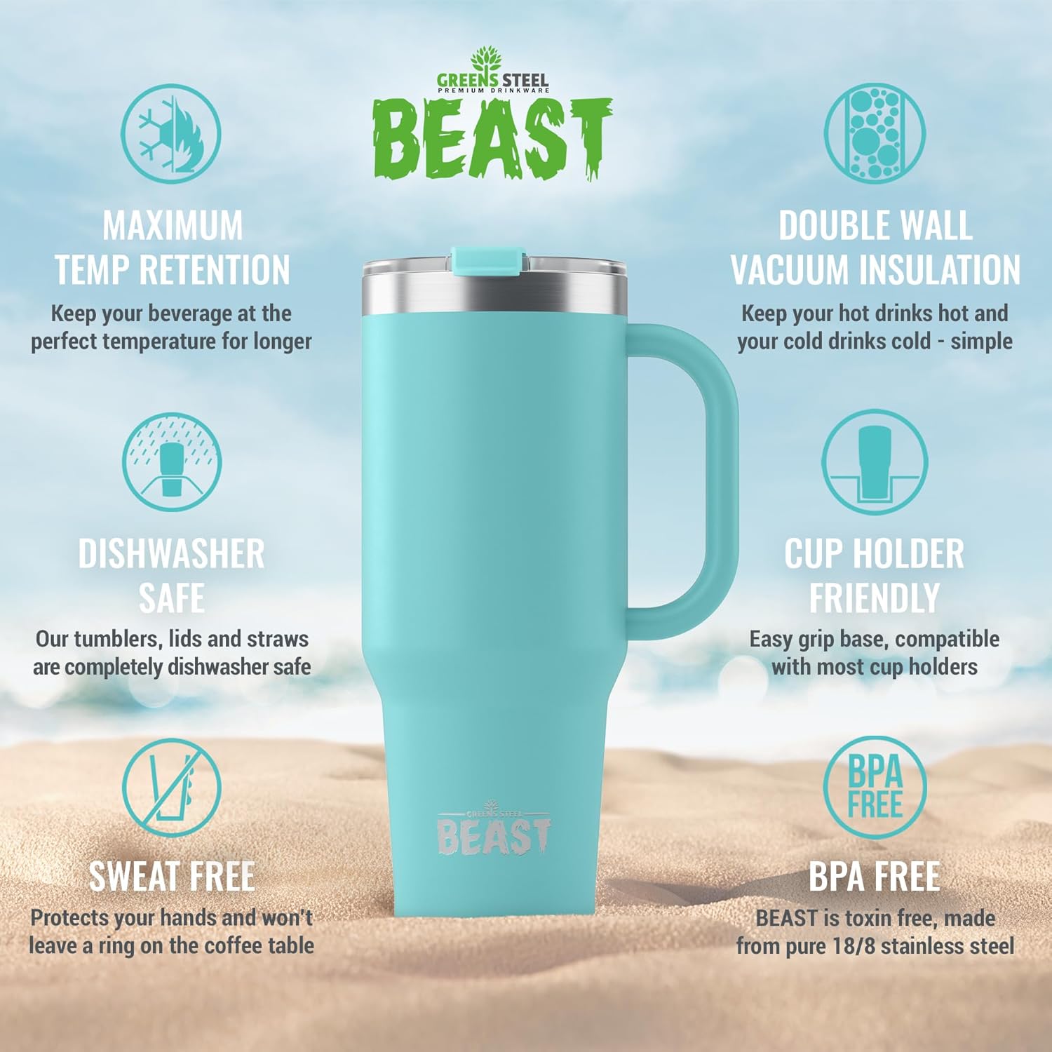 - BIGGER & BETTER – NEW HUGE 42oz and 50oz BEAST Tumbler with Handle has arrived! Offering unprecedented capacity. Now hold even more of your favorite beverage at the perfect temperature for longer!