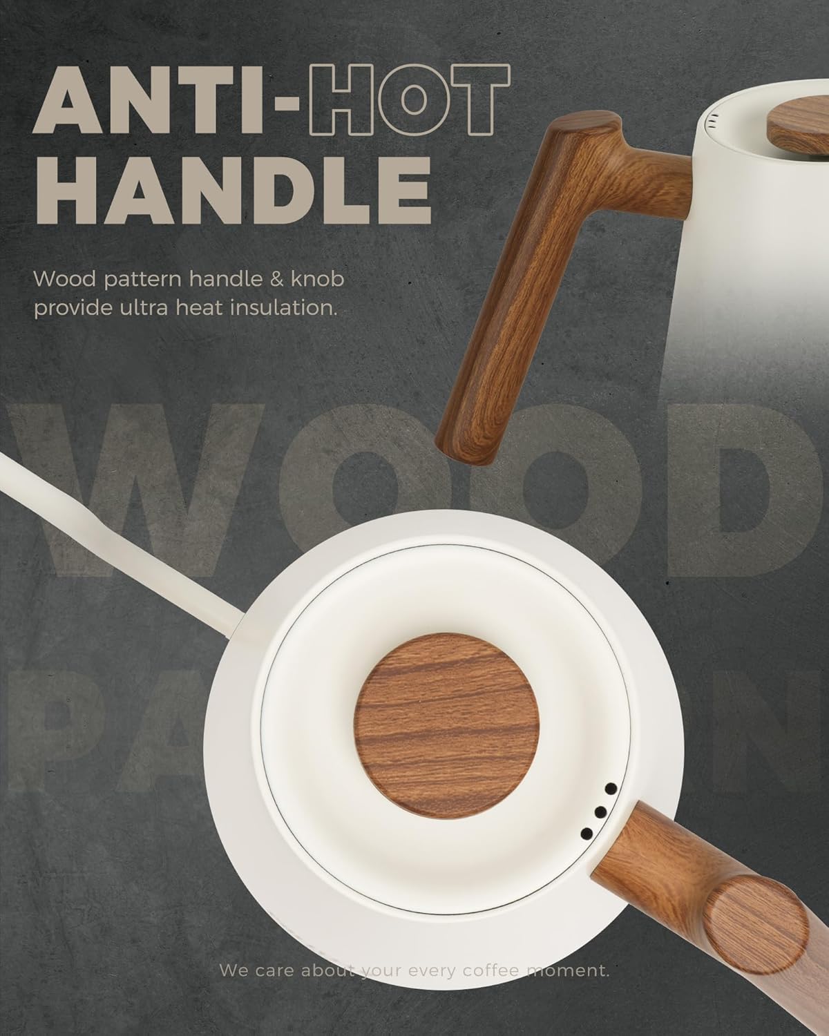 - STYLISH DESIGN WITH WOOD PATTERN HANDLE: This 34oz tea kettle features an ergonomic wood grain heat-resistant handle for comfortable pouring, alongside an easy-to-read LED display that shows real-time temperature readings, ensuring precise brewing without guesswork.