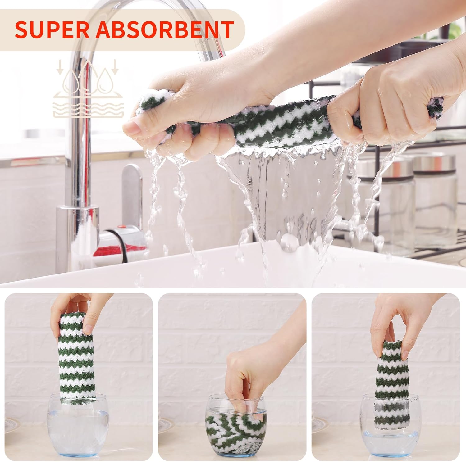- Super Soft and Absorbent: Experience the luxurious softness of our dish towels. They are crafted with high-quality materials which feels soft and won't scratch your hands or any surfaces. Strong water absorption, easily absorb liquid and overflow, make the surface clean and dry.