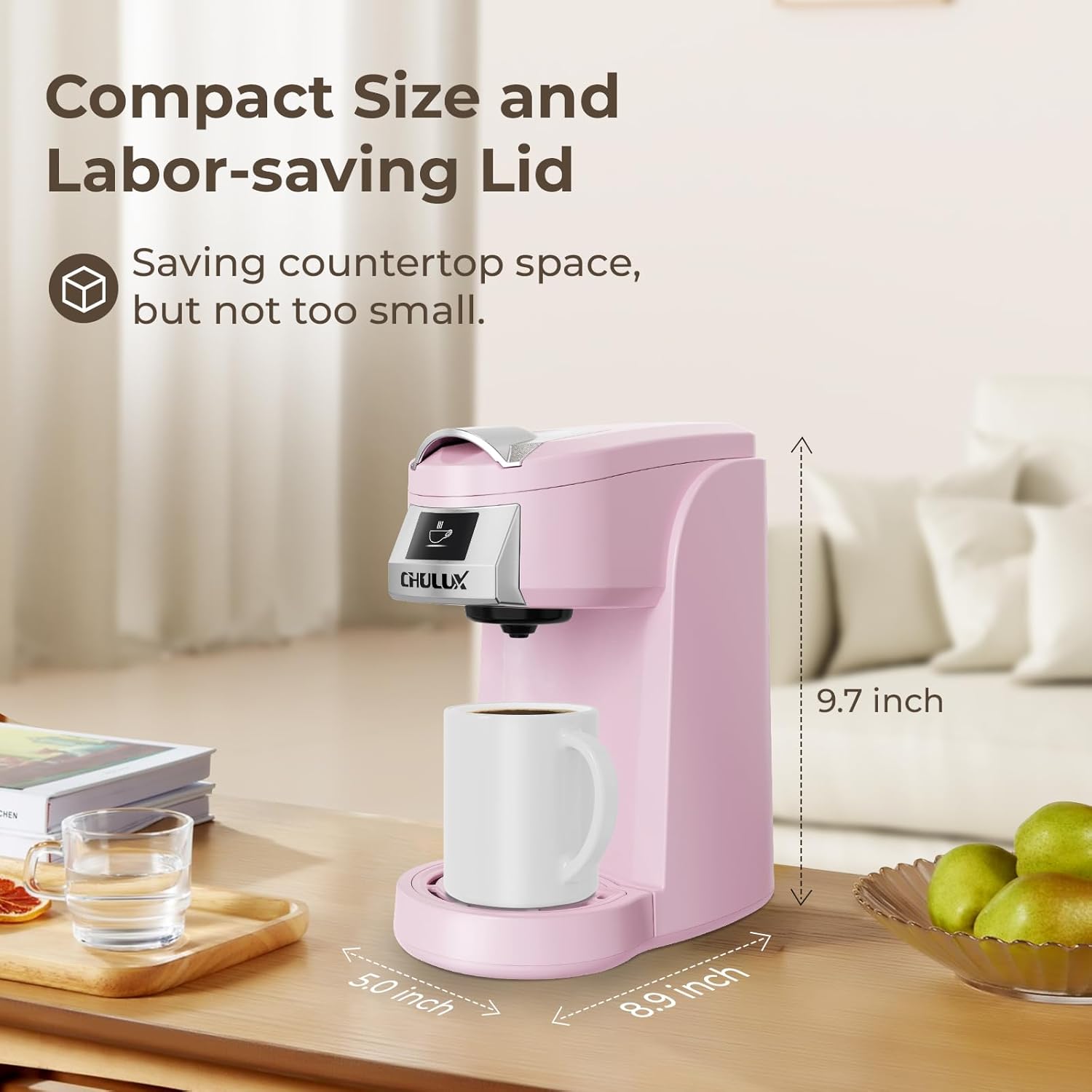 CHULUX Classic Single Serve Coffee Maker for K Cup, One Button Easy Coffee Machine for Office, RV, Travel and Dorm, Pink