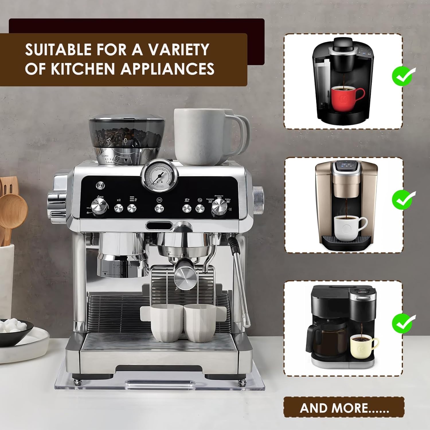 Appliance Sliders for Kitchen appliances Sliding Tray for Coffee Maker, Espresso Machines, Mixers Sturdy Kitchen Aid Sliders for Mixer - Duty Equipment with Rubber Wheels - 13" x 14" (Clear)