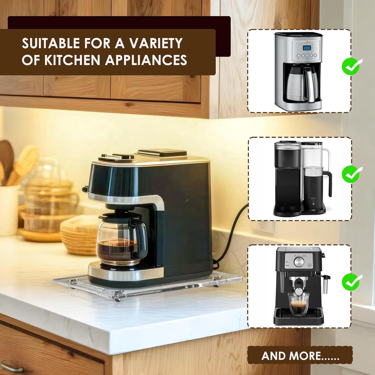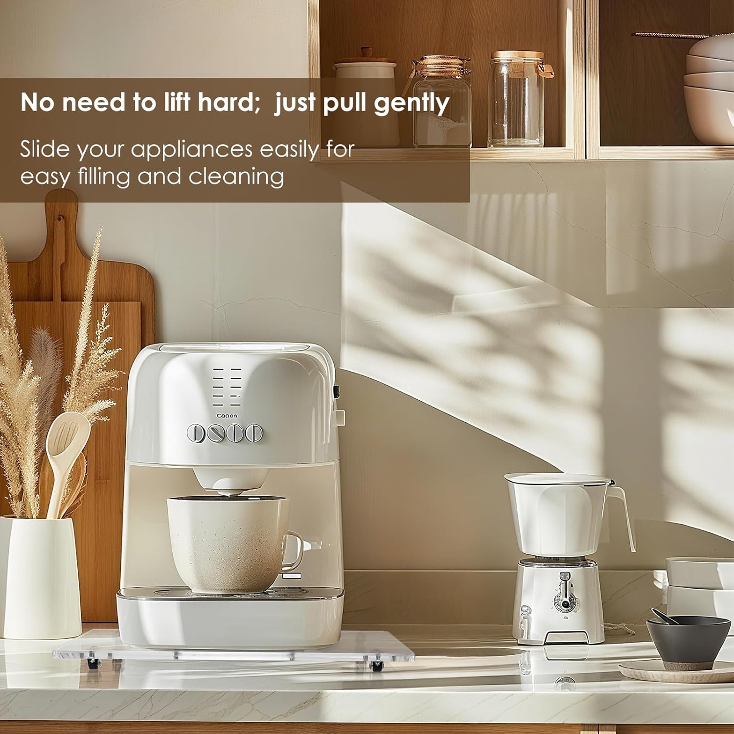 Appliance Sliders for Kitchen appliances Sliding Tray for Coffee Maker, Espresso Machines, Mixers Sturdy Kitchen Aid Sliders for Mixer - Duty Equipment with Rubber Wheels - 9.8" x 14" (Clear)