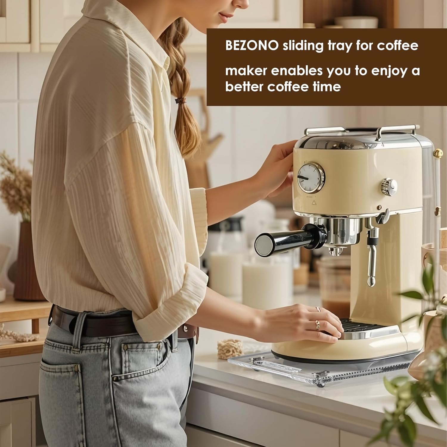 - Versatile Size Options: Available in two sizes, the BEZONO coffee maker slider tray for the counter offers a tailored fit for various appliances. 14 x9.8 inches is perfect for large coffee makers, espresso machines, and stand mixers, while 14 x 13 inches suits 3-quart instant pots and dual coffee brewers. Excellent kitchen aid mixer accessories