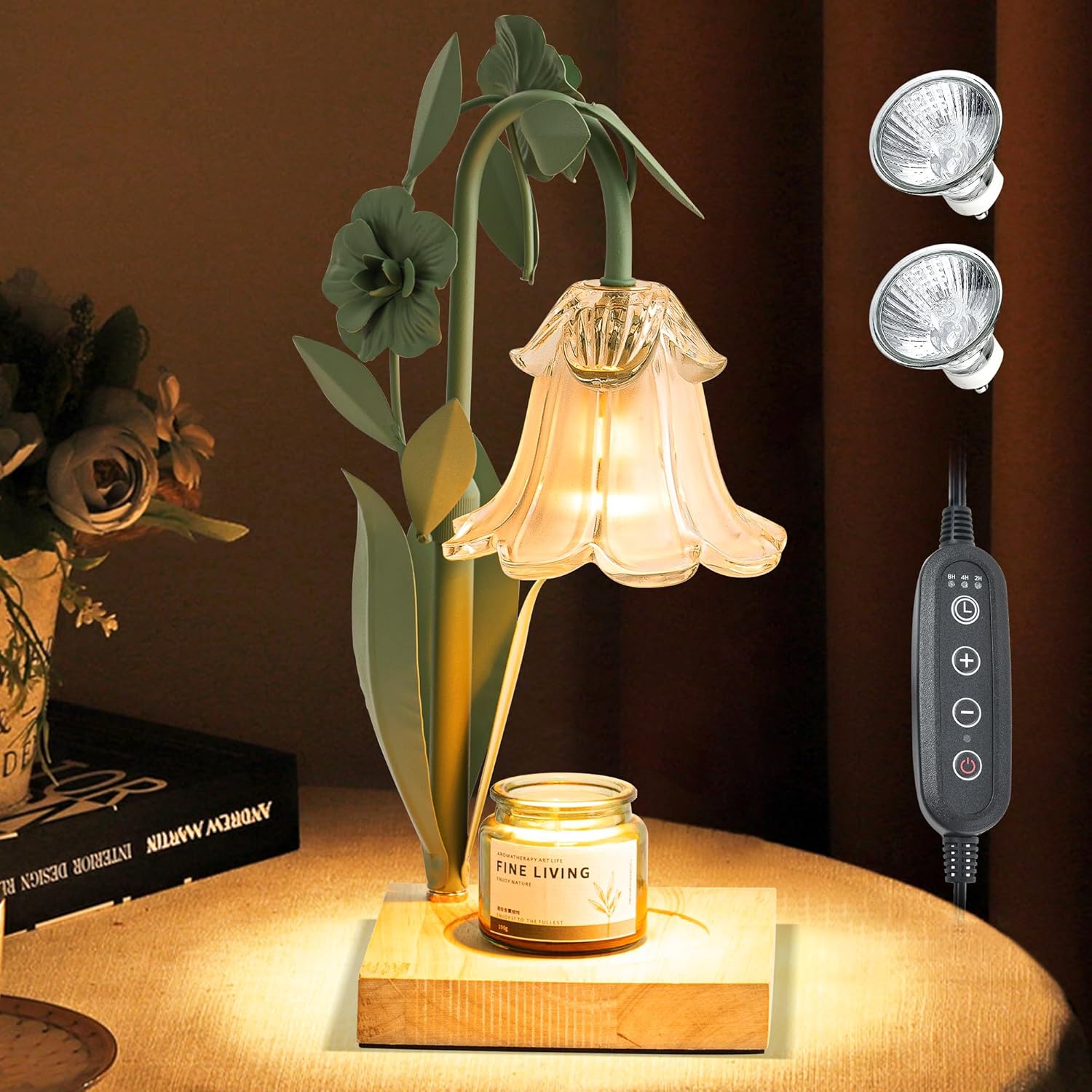 - ❀ [Exquisite Modern Design] Flower candle warmer lamp is designed with lily of the valley flower lamp, which stands out from traditional Fragrance candle warmers lamp, with solid wood base and metal body, not easy to lose color and not easy to rust, high temperature resistant frosted glass lampshade softly transmits light and not blinding, our candle watmer lamp combines vintage and modern aesthetics, The elegant candle lamp warmer shape adds a unique aesthetic to your home decor, making it a conversation starter and a source of pride