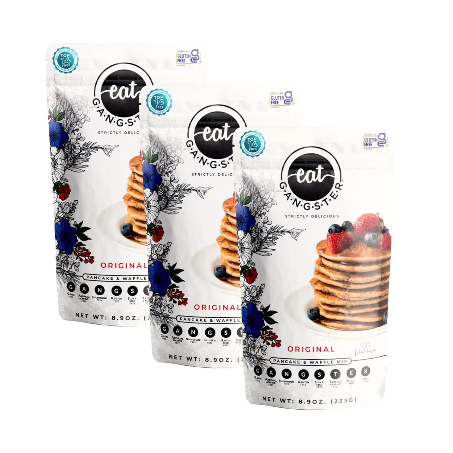 eat G.A.N.G.S.T.E.R. Vegan Pancake & Waffle Mix - Allergy-Friendly Baking Mix, Grain-Free, No Dairy, Nuts, Gluten, Dairy - For Paleo & AIP Diets, Fluffy Pancake & Crispy Waffle Breakfast Food, 3 Pack
