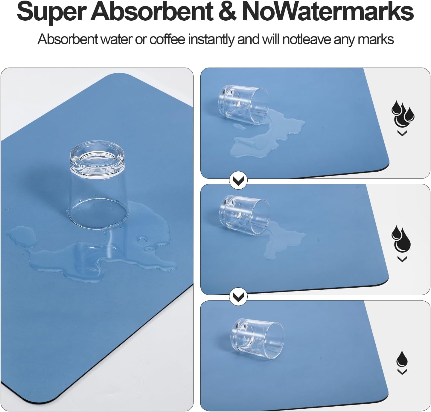 - 【Quick Absorption】 The soft diatomite dish drying mat instantly absorbs any liquid without staining your countertop.
