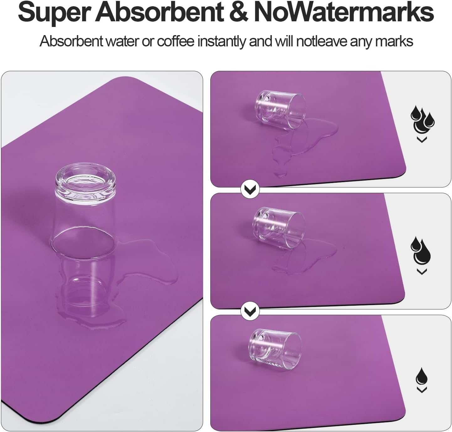 Dish Drying Mat for Kitchen Counter | Coffee Bar Mat for Countertops | Heat Resistant Drainer Mat with Non-slip Rubber Backed | Hide Stain Kitchen Absorbent Draining Mat | Purple 18"x32"