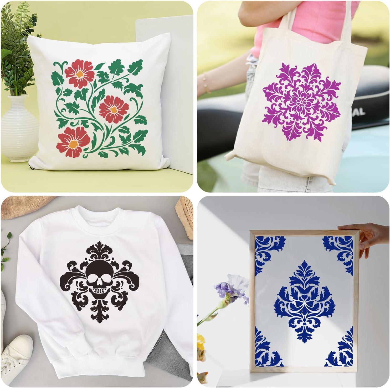 - 【Quality Material】Our mandala layering stencils templates is made of PET plastic, durable, thick and washable, and reusable after washing. It's incredibly tear proof yet flexible enough for any flat surface. These damask stencils for crafts are a good idea for your crafts needs