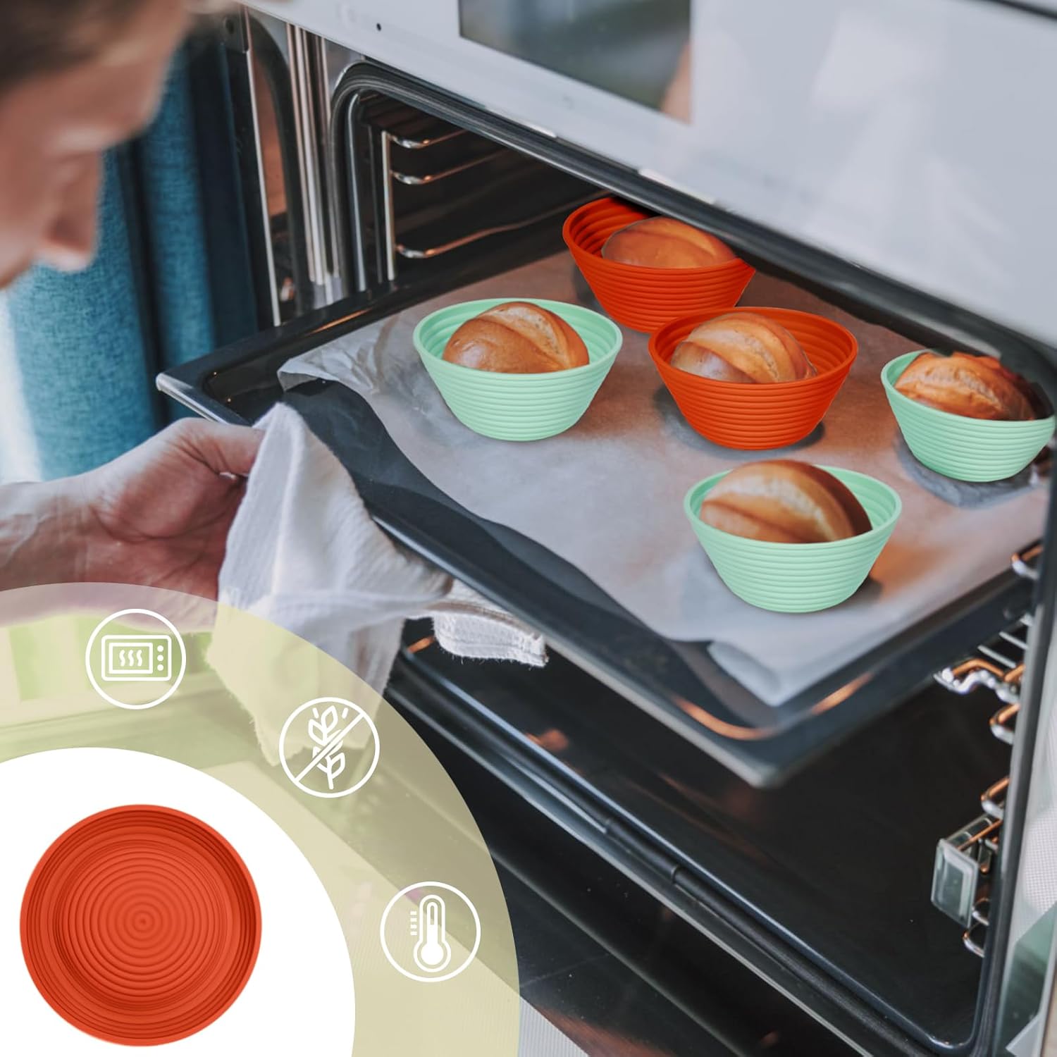 Silicone Banneton, Sourdough Bread Baskets (Set of 6, 5 Inch), Round Proofing Bread Bowls with Starter Kit, Bread Making Baking Supplies