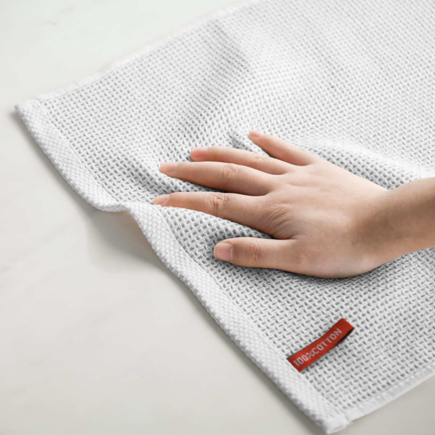 Artoid Mode 100% Cotton Light Grey Waffle Weave Kitchen Dish Cloths, 12x12 Inch Ultra Soft Absorbent Quick Drying Kitchen Dish Towels Set of 6