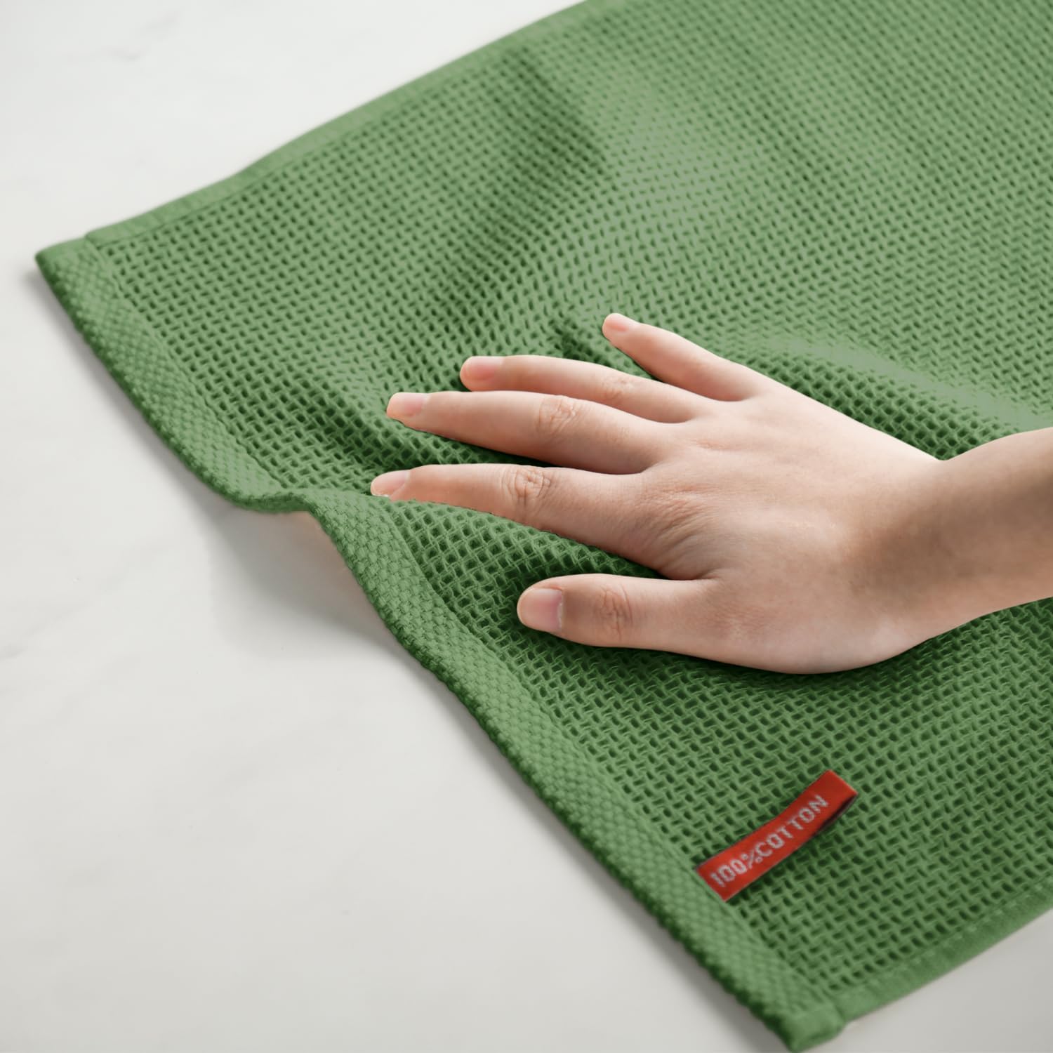 Artoid Mode 100% Cotton Olive Green Waffle Weave Kitchen Dish Cloths, 12x12 Inch Ultra Soft Absorbent Quick Drying Kitchen Dish Towels Set of 6