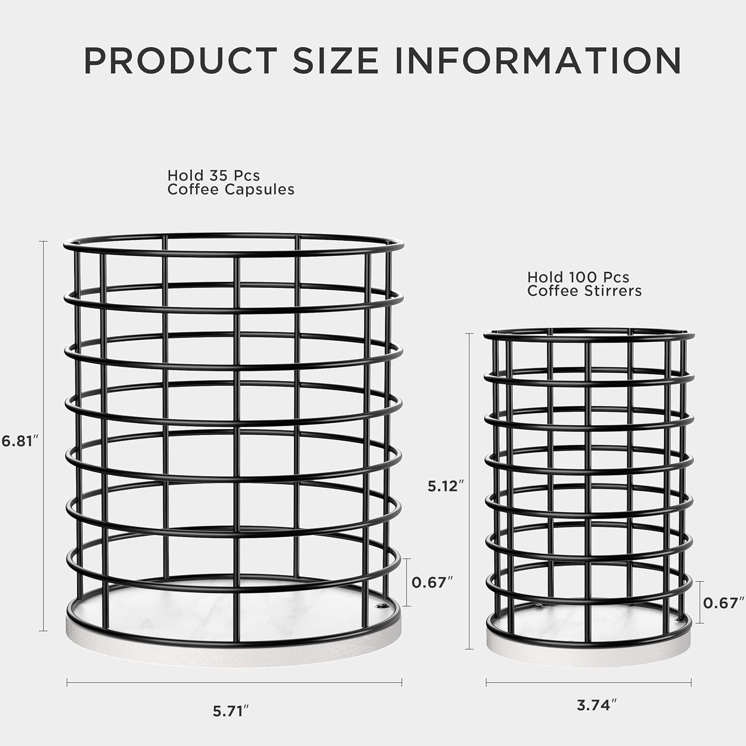 HBlife Coffee Pod Holder & Coffee Stirrers Holder Set, Metal Coffee Bar Accessories Large Capacity Kitchen Counter Decor for Keurig K cup & Nespresso Vertuo (Black Wire)