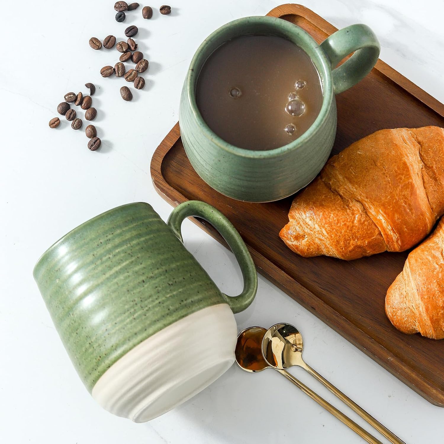 Hasense Large Coffee Mugs, Ceramic Tea Cups with Comfortable Handle Set of 2, Perfect for Milk, Latte, Hot Cocoa, Dishwasher and Microwave Safe, Green