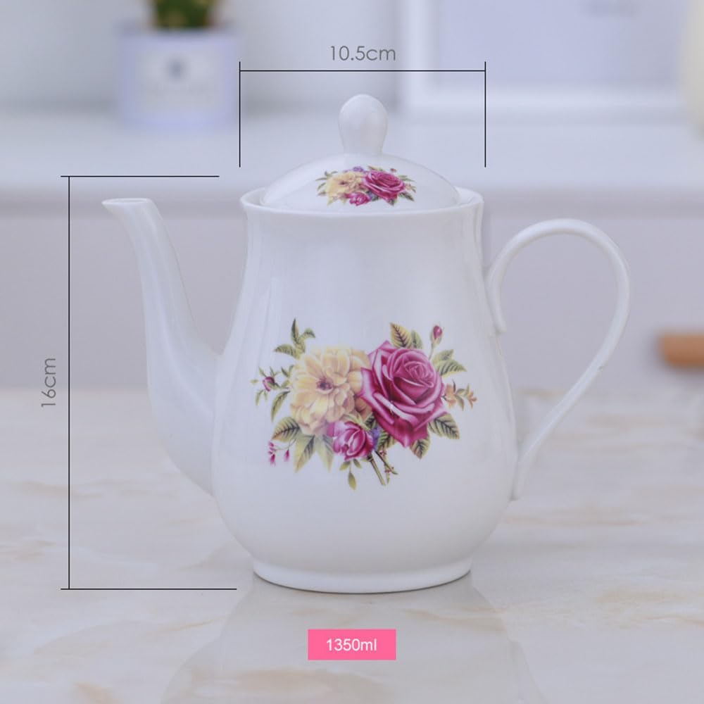 European Style Porcelain Teapot, Coffee Tea Water Pot Vintage Ceramic Kettle (50oz)