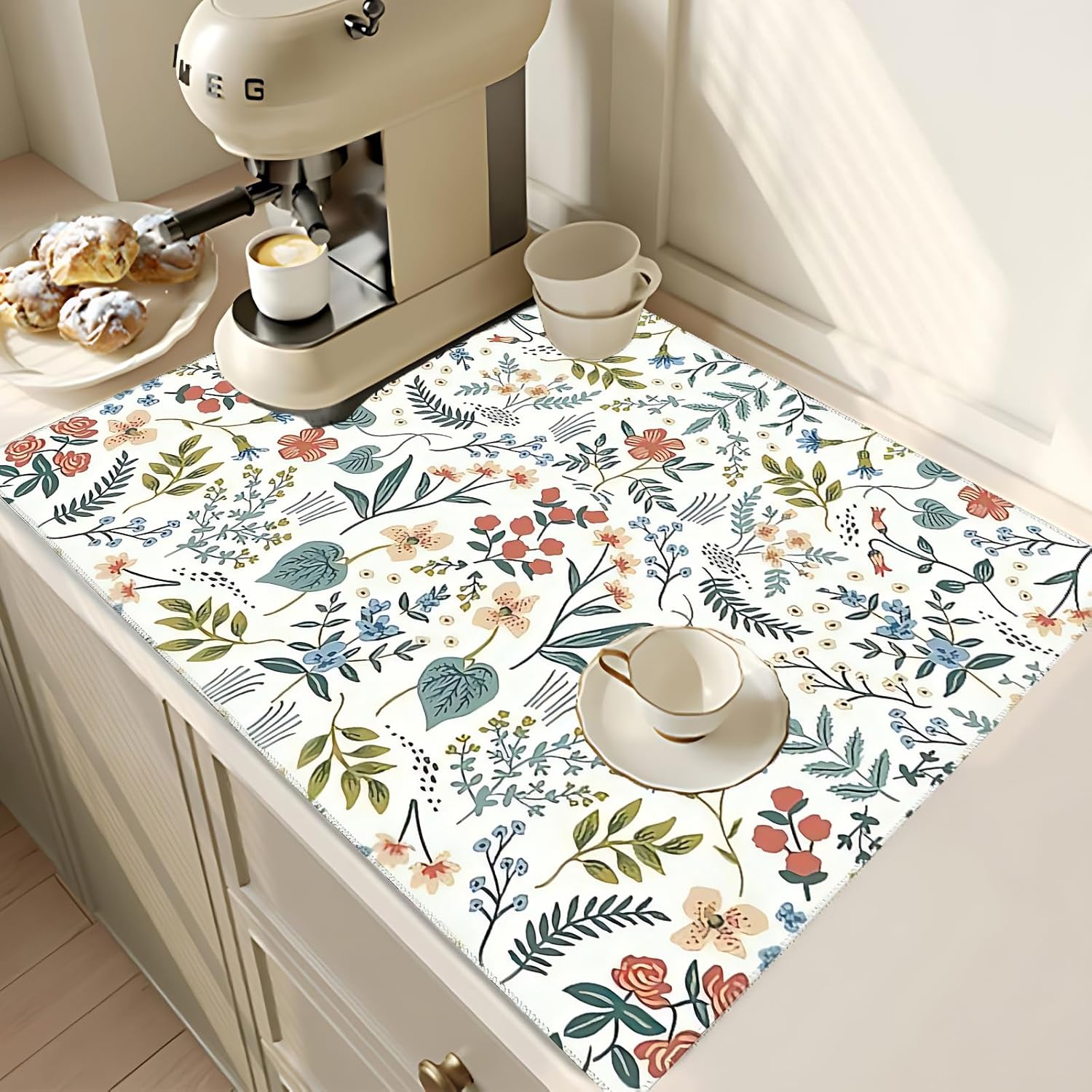 2Pcs Dish Drying Mats Faucet Mats Sets Large Size Coffee Mats Sink Faucet Mat Splash Guard for Kitchen Counter Bathroom Sink Coffee Bar Kitchen Decor (Wildflowers 1, 18"x24" 15" x 5.5"Set)
