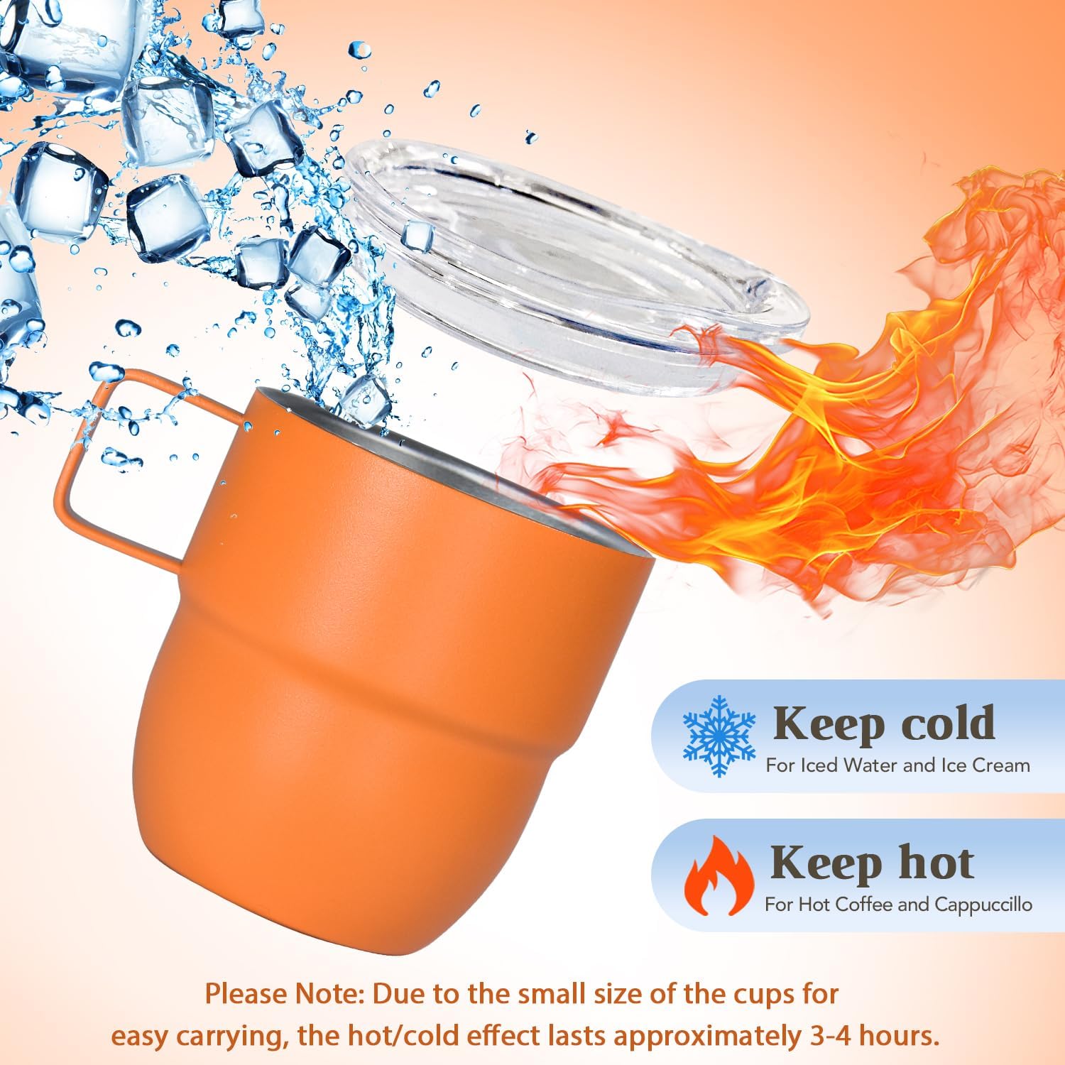 - DOUBLE WALL STAINLESS STEEL: Our espresso cups are made from double wall 18/8 stainless steel, vacuum insulated. Compared to ceramic lining, stainless steel lining are more durable, anti-scald, odourless, not break easily, and better at retaining hot or cold. Whether it's a hot coffee or an iced coke, this small cup is up to the task! (Please Note: Due to the small size of the cups for easy carrying, the hot/cold effect lasts approximately 3-4 hours.)