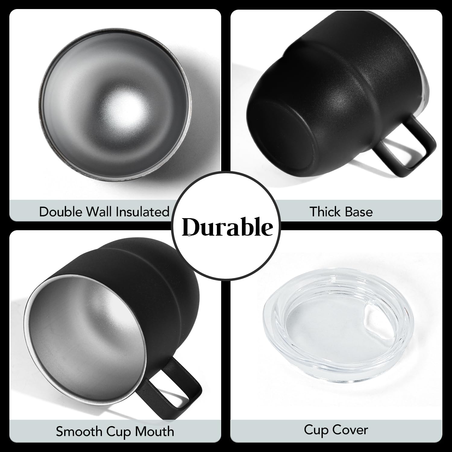 - DOUBLE WALL STAINLESS STEEL: Our espresso cups are made from double wall 18/8 stainless steel, vacuum insulated. Compared to ceramic lining, stainless steel lining are more durable, anti-scald, odourless, not break easily, and better at retaining hot or cold. Whether it's a hot coffee or an iced coke, this small cup is up to the task!(Please Note: Due to the small size of the cups for easy carrying, the hot/cold effect lasts approximately 3-4 hours.)