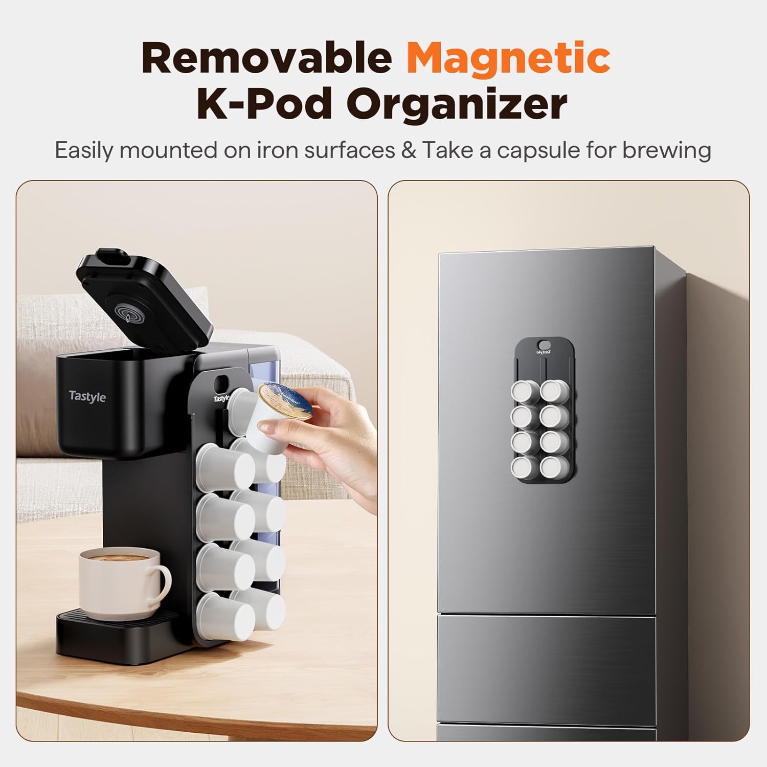 - Innovative Magnetic K-Pod Organizer Included: Easily mounted on the coffee machine's side for organized pods storage, saving counter space, and easily taking a pod for brewing (Pods Not Included)