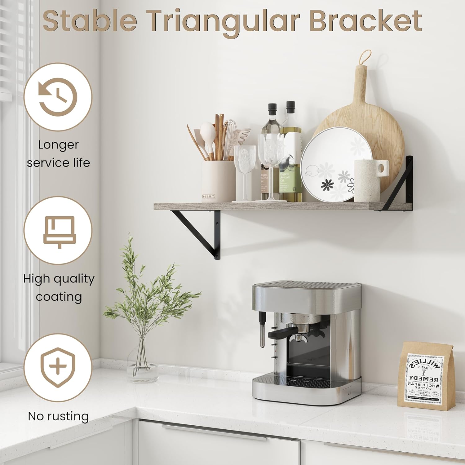 - Wall Decor and Storage: These classic and practical grey floating shelves are the perfect solution to transform blank, uninspiring walls into stylish, functional displays. Showcase your favorite books, collectibles, artwork, and more with ease, adding both character and organization to any room.