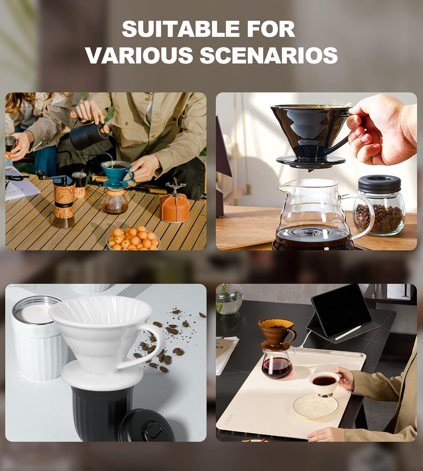 - ☕【Heat-resistant Ceramic】 Crafted from high temperature premium ceramic, with good heat preservation and durability, prevents heat loss during brewing compared to a stainless steel or plastic filter. Porcelain does not absorb odors or pass on chemical taste into your brew.Its sleek finish complements any kitchen, office, or cafe decor, blending functionality with minimalist style.