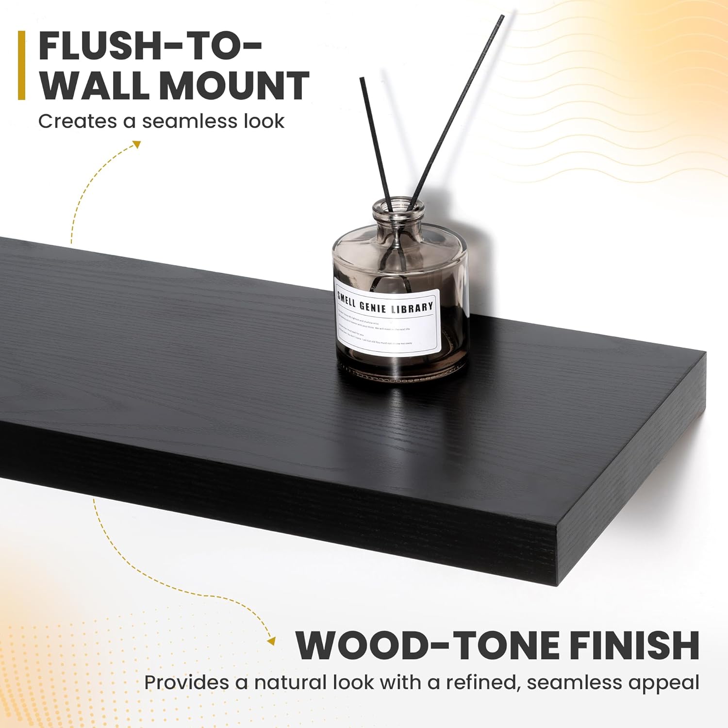- [ROBUST & SECURE MOUNTING]: Equipped with a sturdy, hidden mounting bracket, these 48-inch floating shelves ensure solid support for your items. Designed for easy and secure installation, they come with all necessary hardware for a firm, wobble-free setup, allowing you to confidently display decor, photos, or functional items with style.