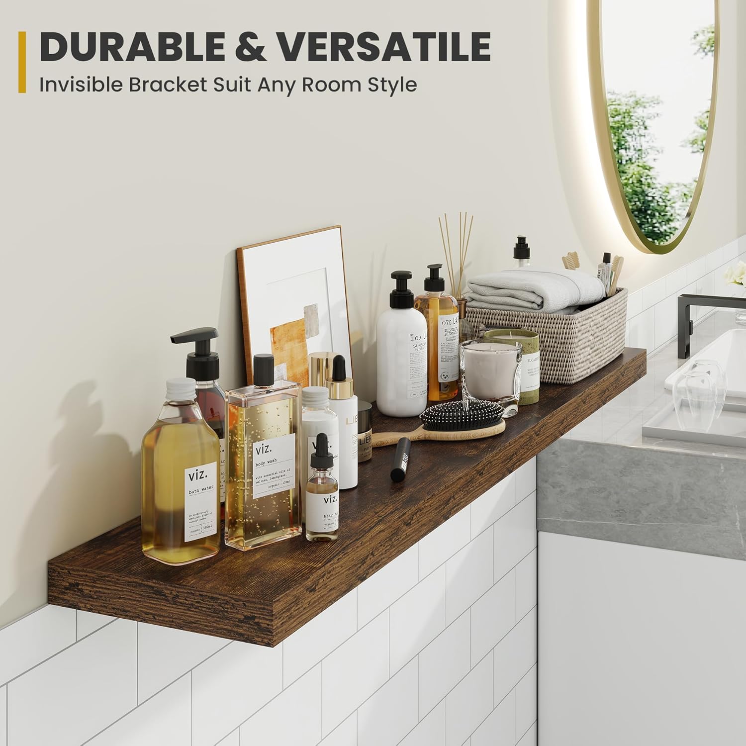 - [QUICK INSTALLATION WITH DETAILED GUIDES]: Our floating shelves include all mounting hardware and a comprehensive guide, enabling quick setup in under 10 minutes. Follow the step-by-step instructions to enjoy these beautiful shelves effortlessly, instantly upgrading your living space.