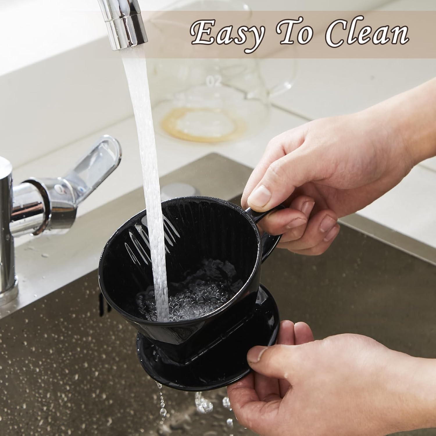 - Effortless Cleanup: The V-shaped conical design makes cleaning simple—just rinse and wipe dry. Additionally, this design increases the contact area between the water and the coffee grounds, ensuring optimal extraction in your pour over coffee dripper.