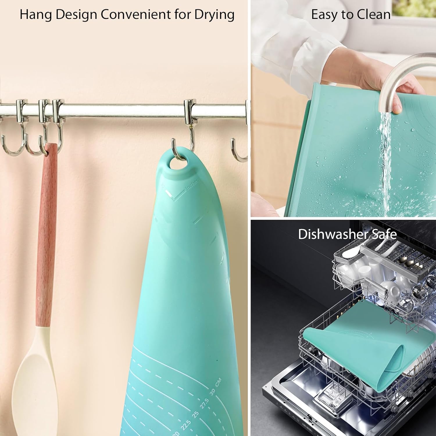 - NON-STICKY SURFACE AND ANTI-SLIP BOTTOM: Using silicone pastry mat make baking is more easy and convenient.You will enjoy the best NON-STICK baking pad. Even if grease or dough sticks to the surface, pastry mat can be easily cleaned up.This non-slip baking mat can realize complete adhesion,strongly adhesive to the countertop,won't slip and slide around.